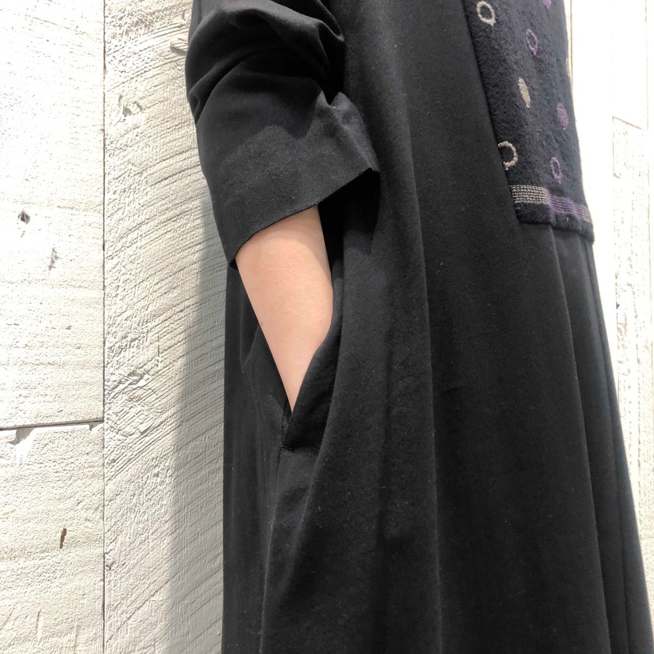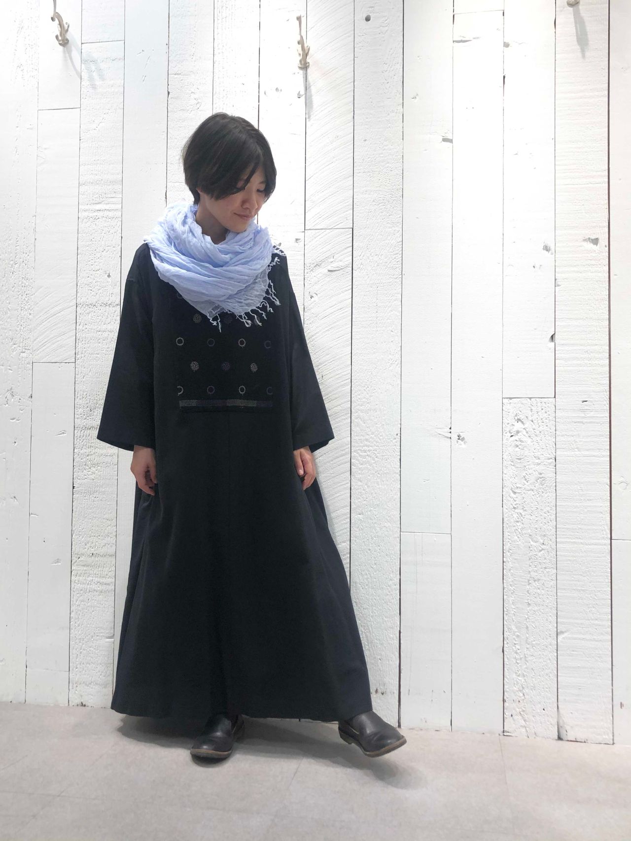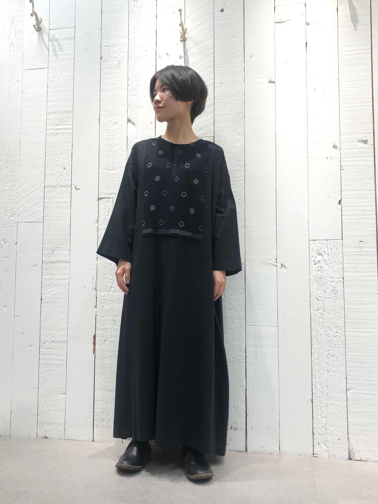そこに、さりげない二色の刺繍で一枚でもサマになるワンピースです。