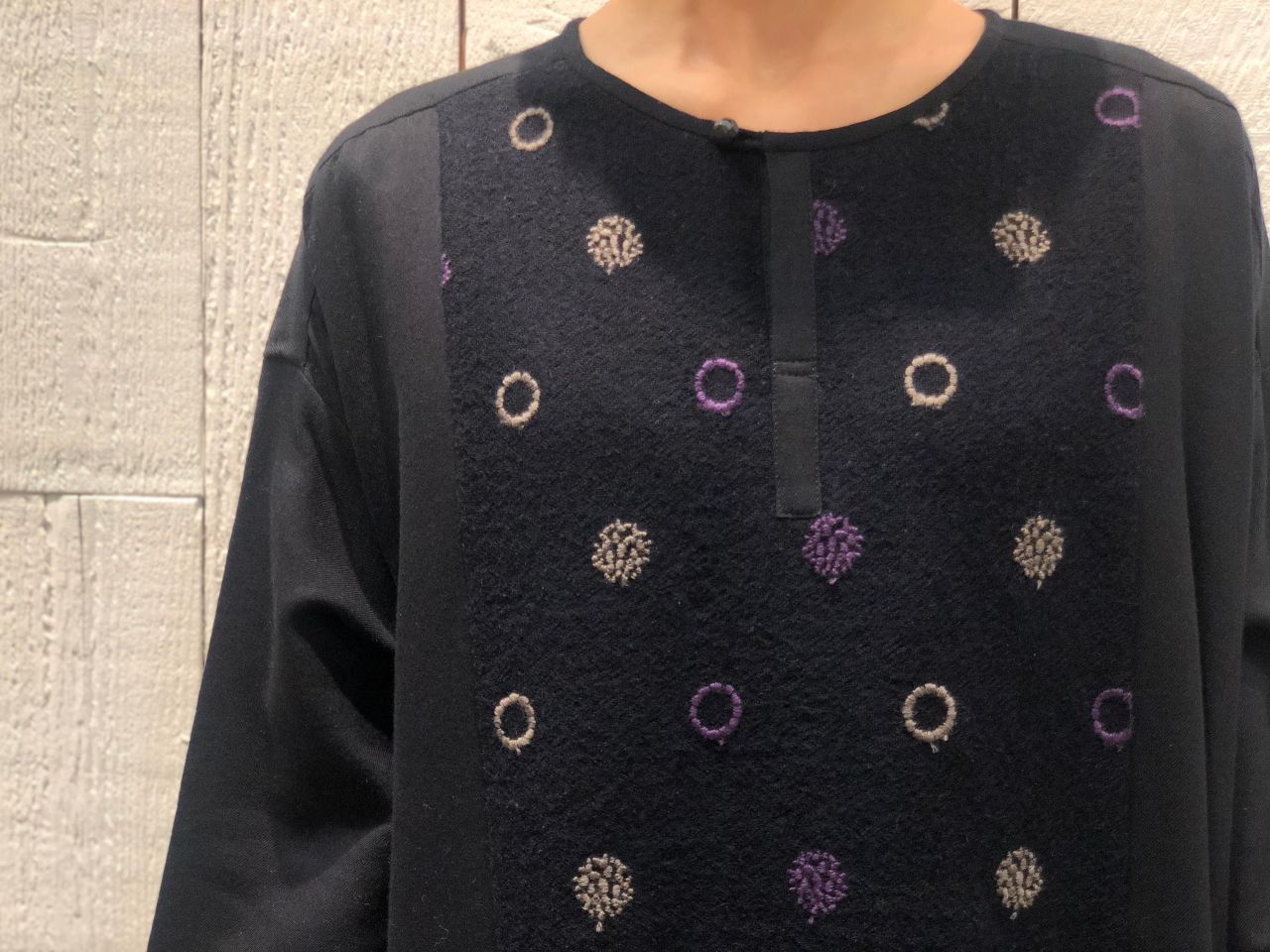 ウールが少し入っていて暖かく、肌触りのいい綿とレーヨンが混ざっているのでチクチク感がなく着やすいですよ。