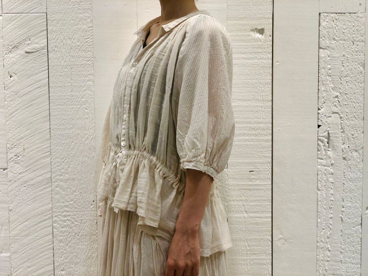 生地の表情や透け感の違いが綺麗な一枚です。