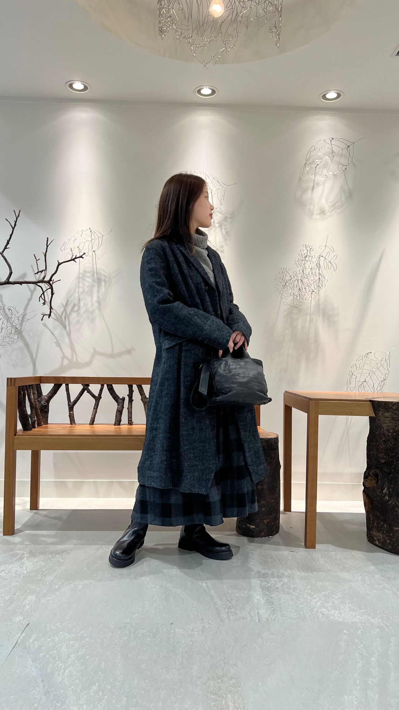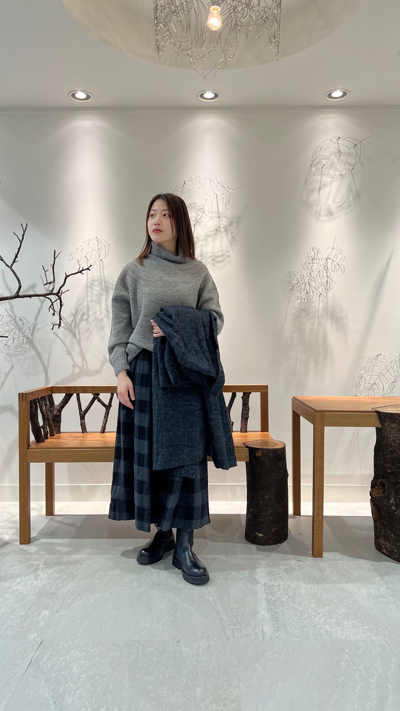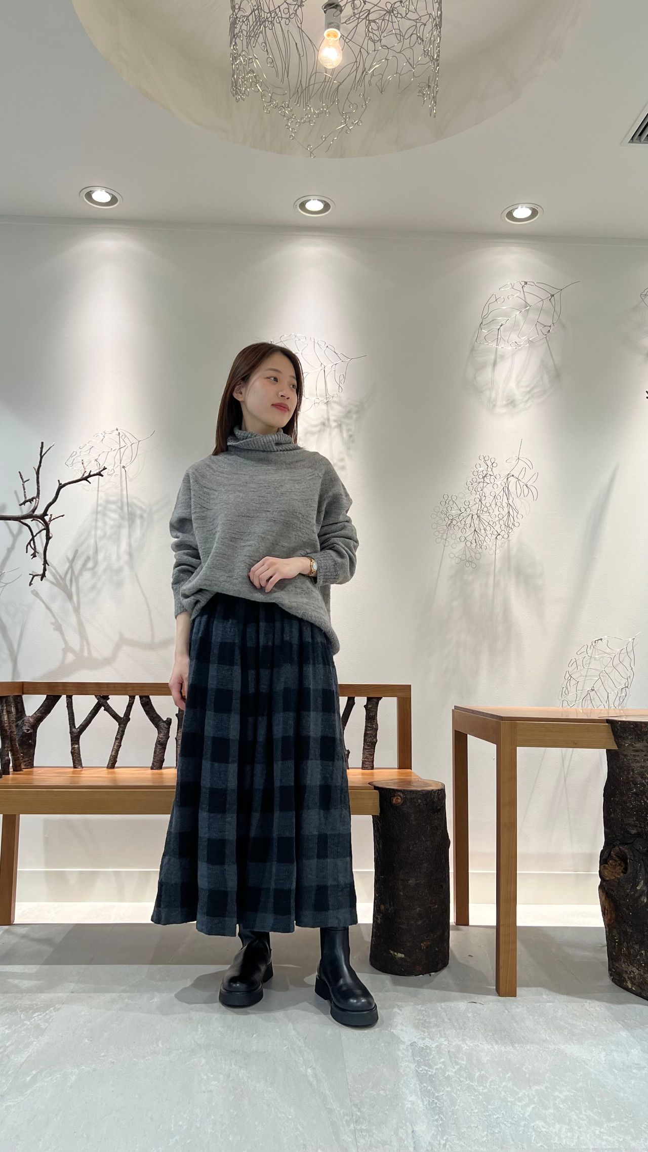 大きめのチェックがインパクトのある、暖かなウール素材のスカート。