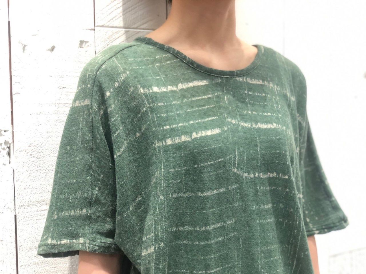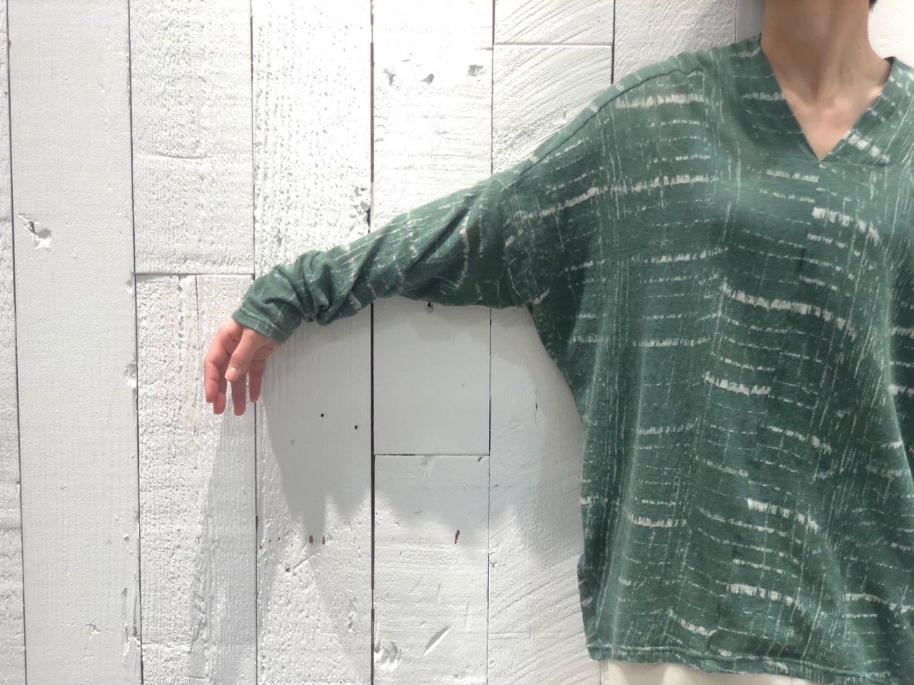 筆で描いたように掠れた様な柄は、存在感はありながらも柔らかいグリーンベースと自然と馴染み、パドカレらしいヴィンテージの風合いに。