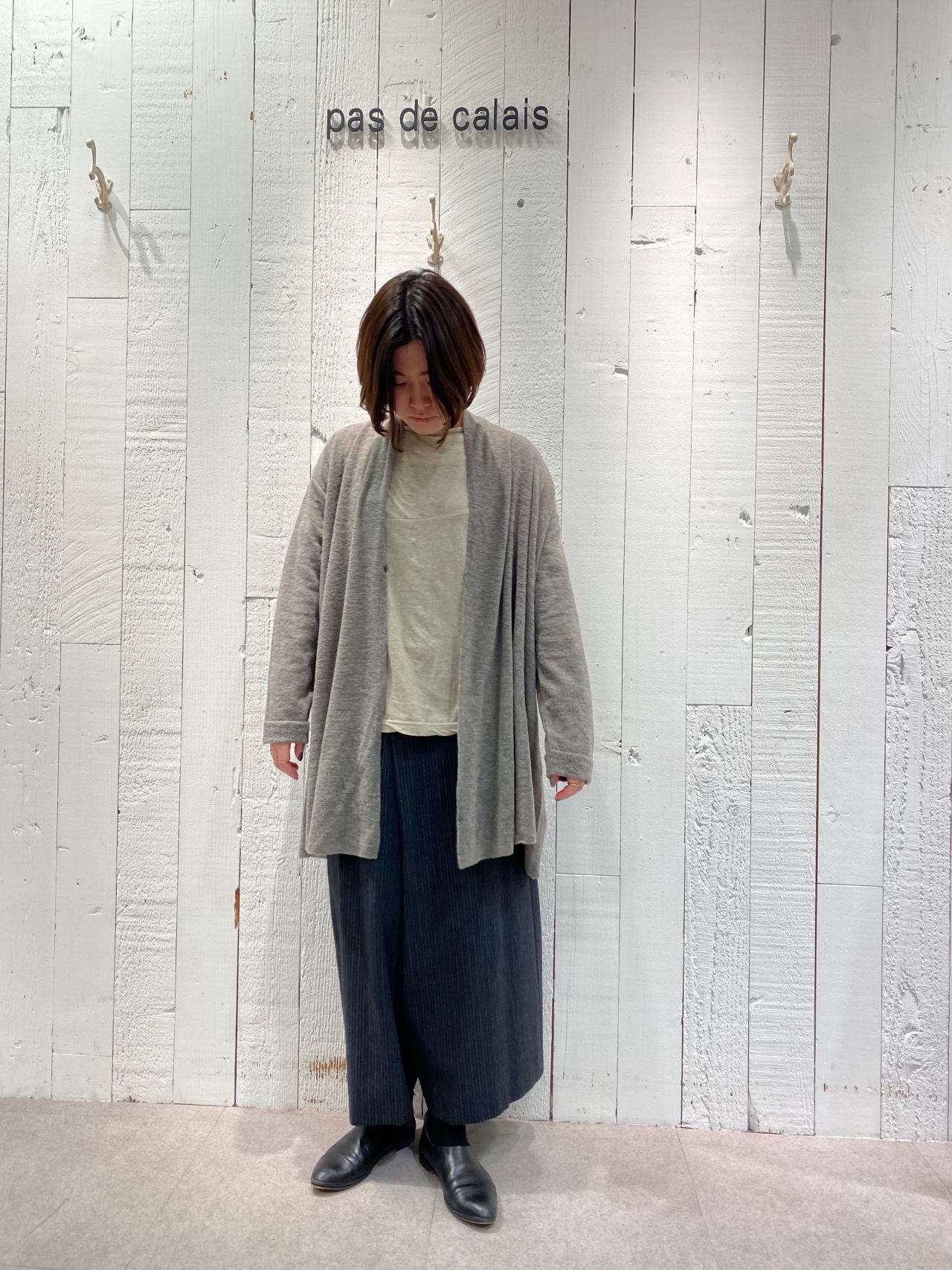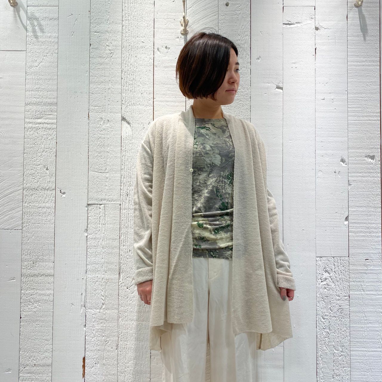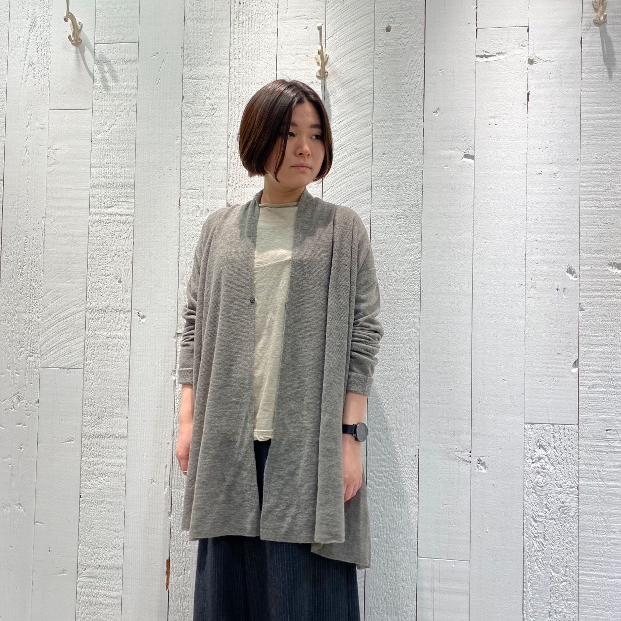 カーディガンとアンサンブルスタイリングもおすすめ。
