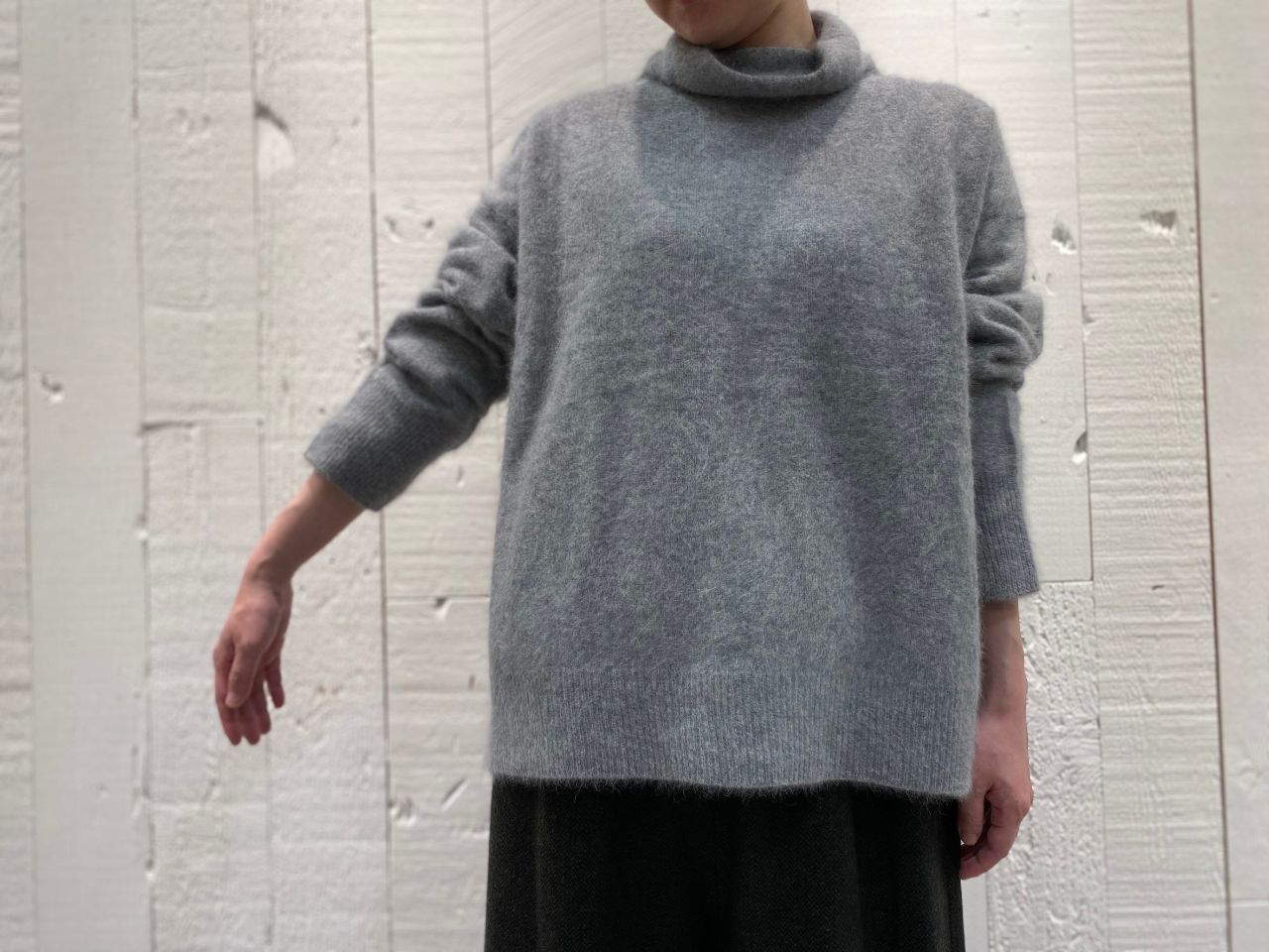 軽くなめらかな肌触りが特長のラクーン100%のニット。ふわふわとした長い毛足の間に空気を含むので保温性がとても高く、極上のあたたかさ。
