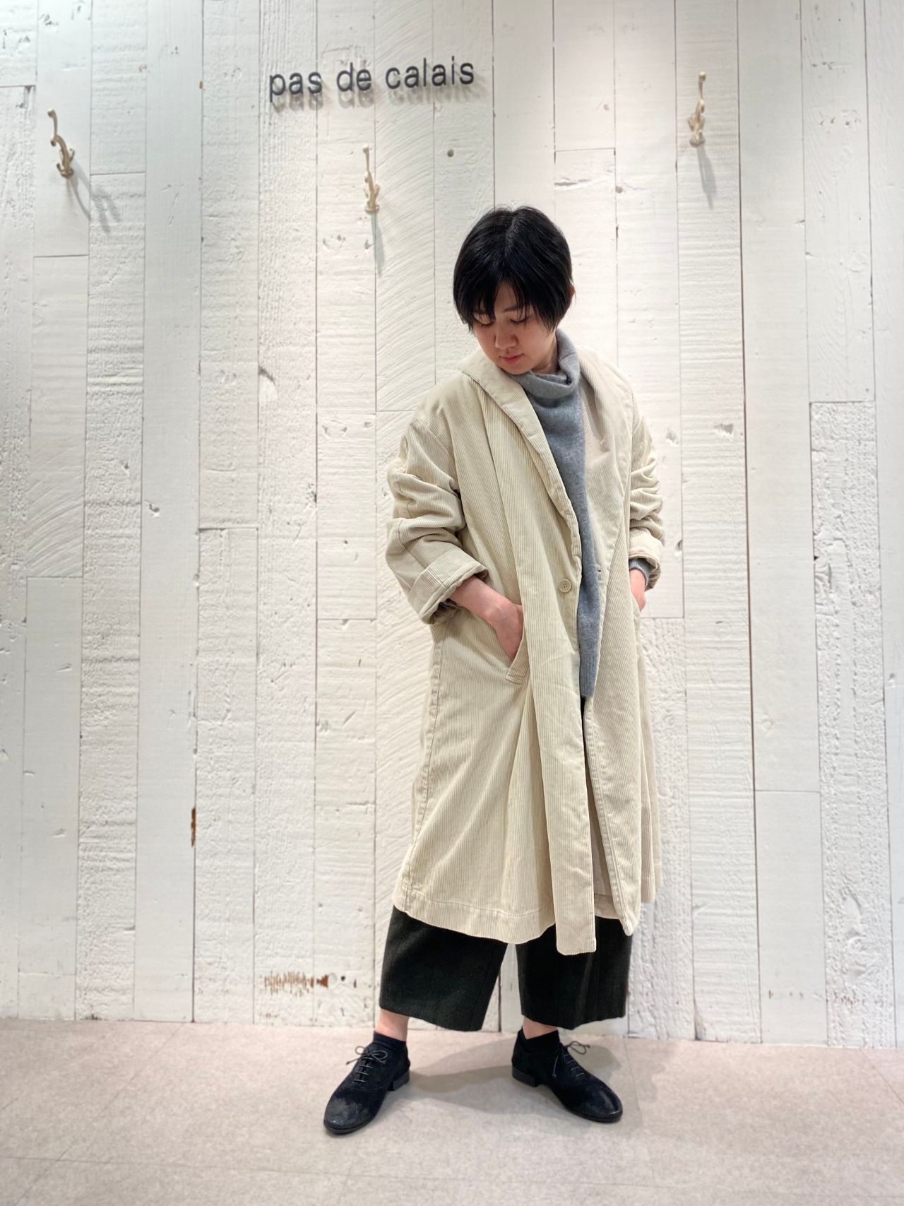 コーデュロイコートでウォーム感を出したお出かけスタイル。