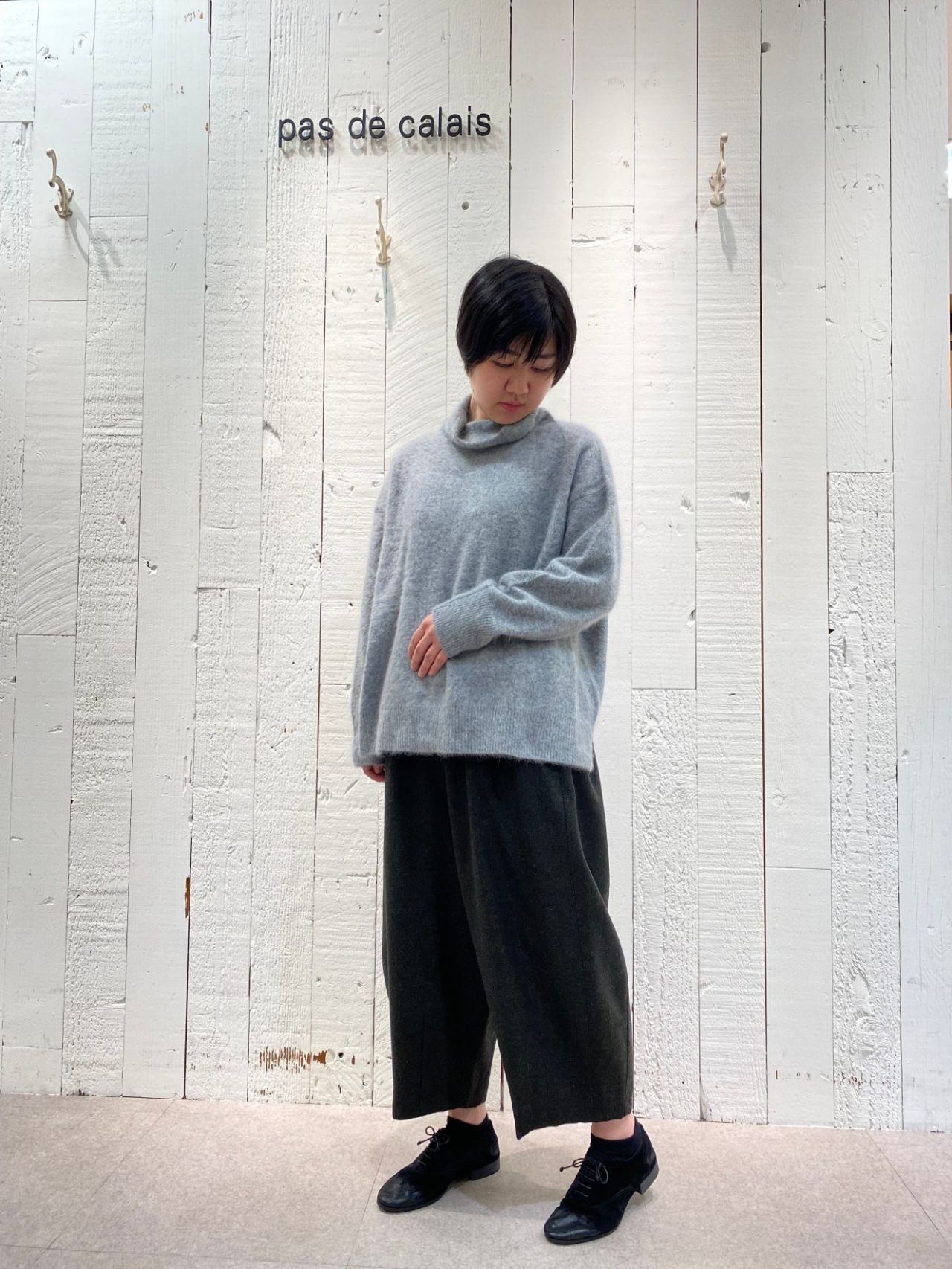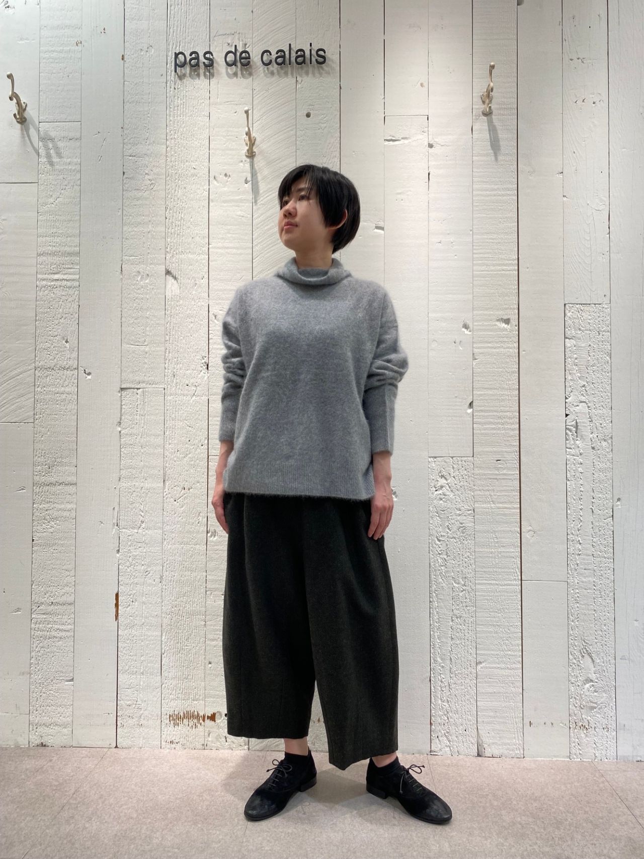 身幅はゆったりとストレスなく着られ、お尻にかかる丈感がニットのぽってりとした肉厚な印象にはならずスッキリとした着こなしに。