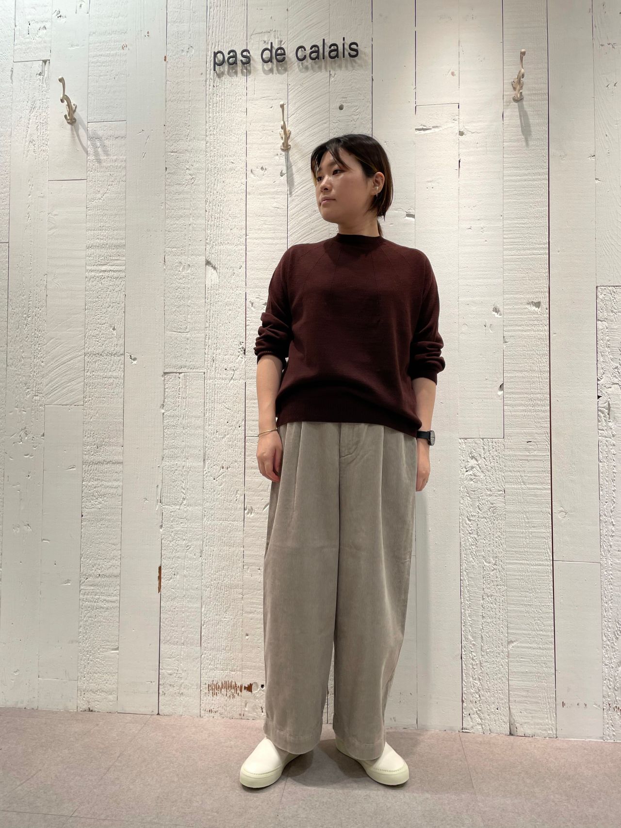 秋冬の素材感で、暖かみのある雰囲気を一足先に感じて頂ければ嬉しいです。