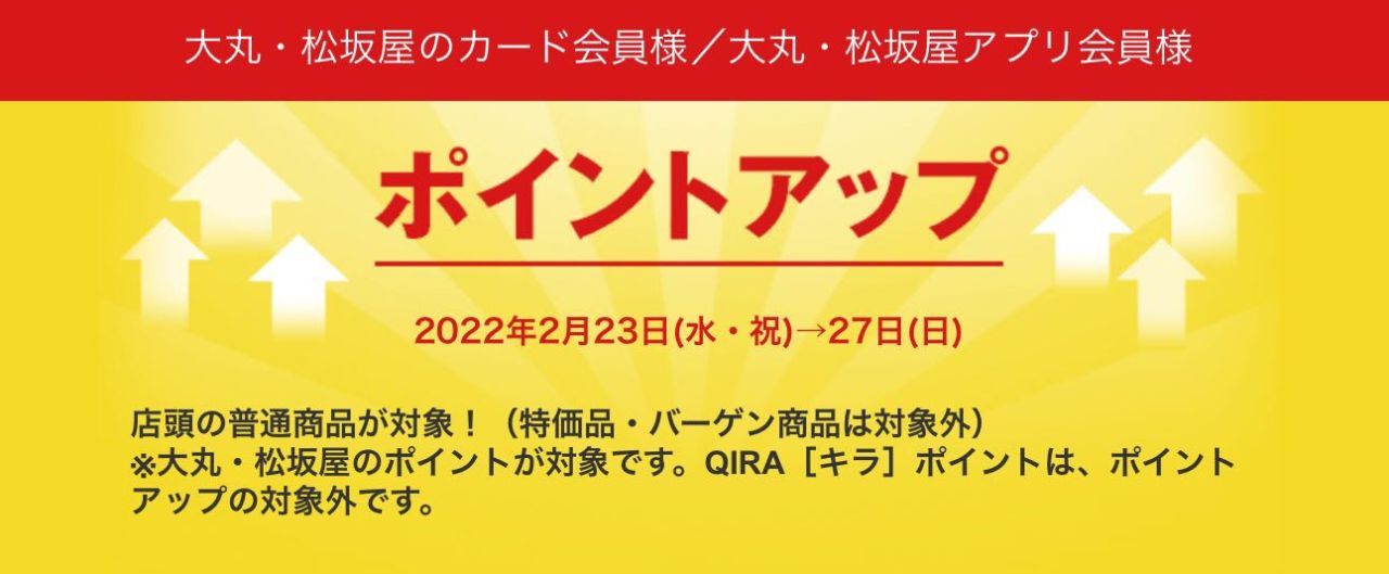 ・大丸松坂屋カード・大丸松坂屋アプリ・大丸松坂屋現金ポイントカードをお持ちのお客様、通常+1%→ +2%アップ