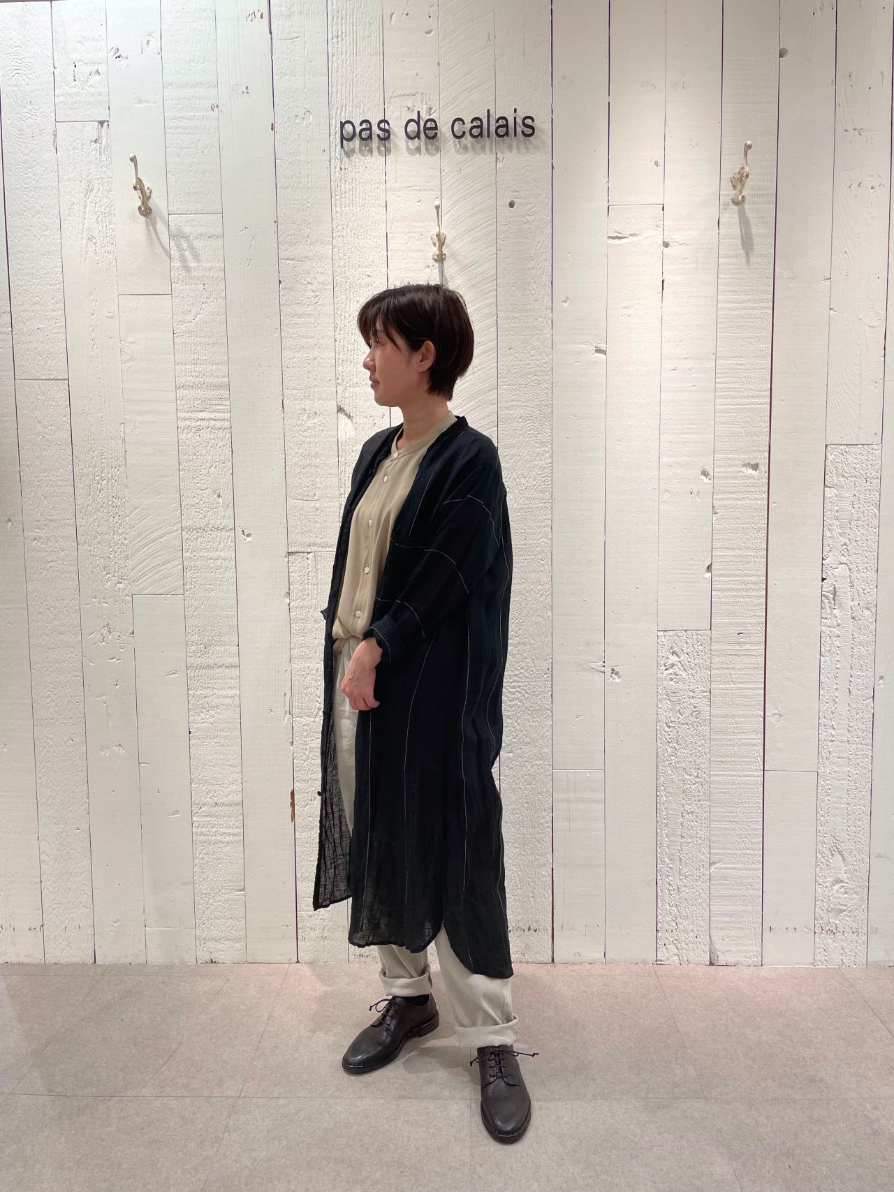 羽織りとしても使え、長すぎないのでどの身長の方も着ていただきやすいですよ。