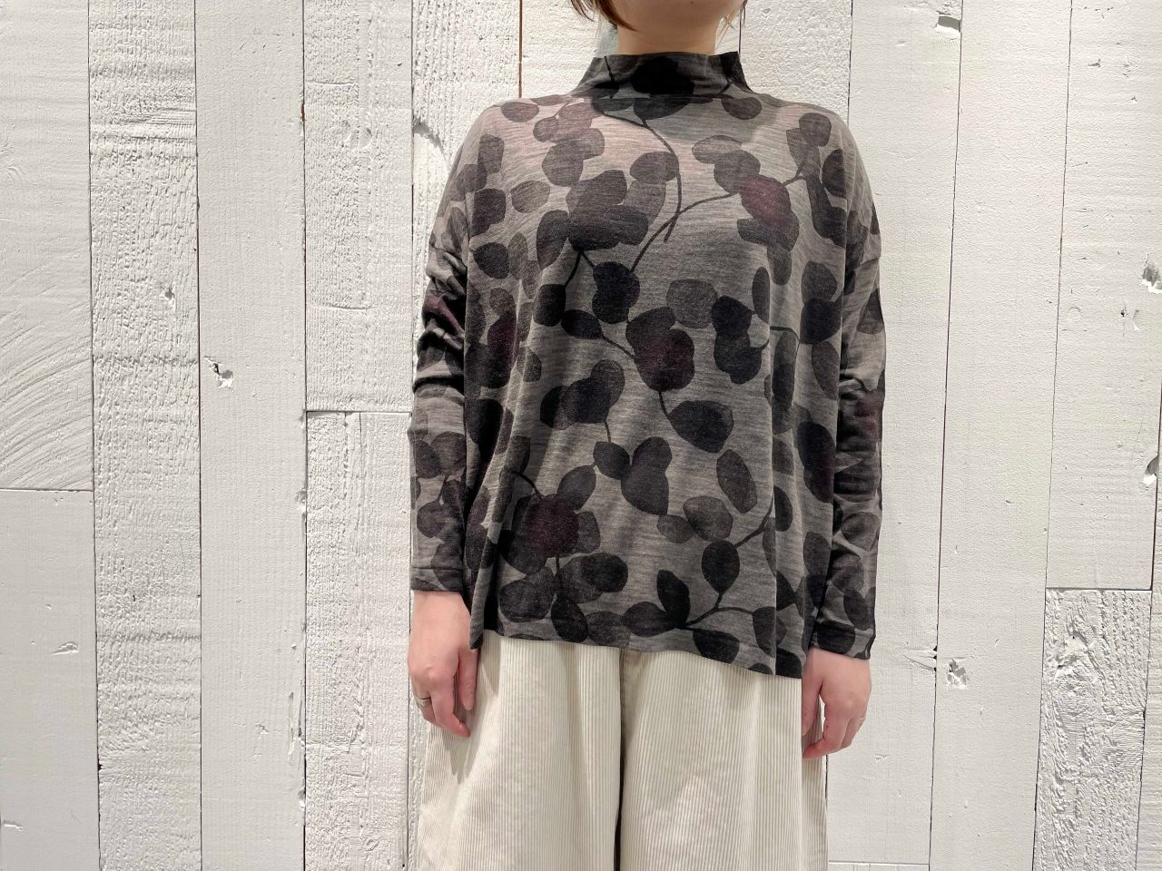 今回のカプセルコレクションのテーマでもある、寒椿をプリントしたカットソー。