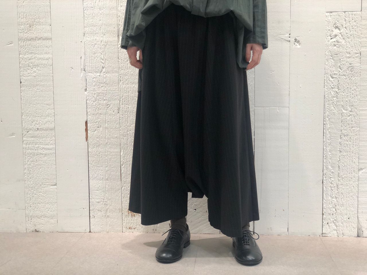 トップスを選ばない、さりげないピンストライプ柄。