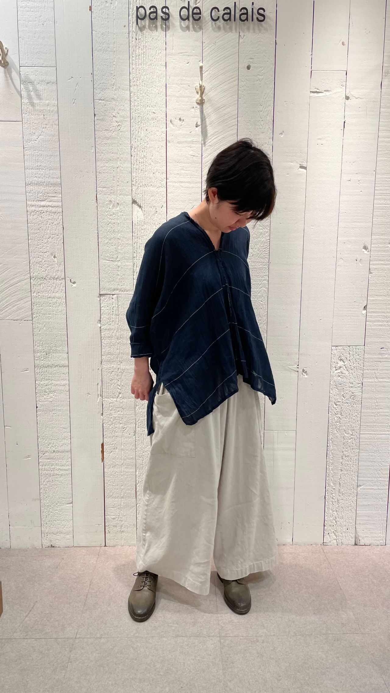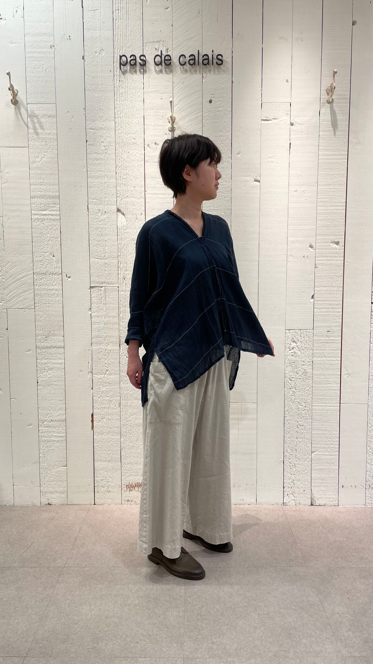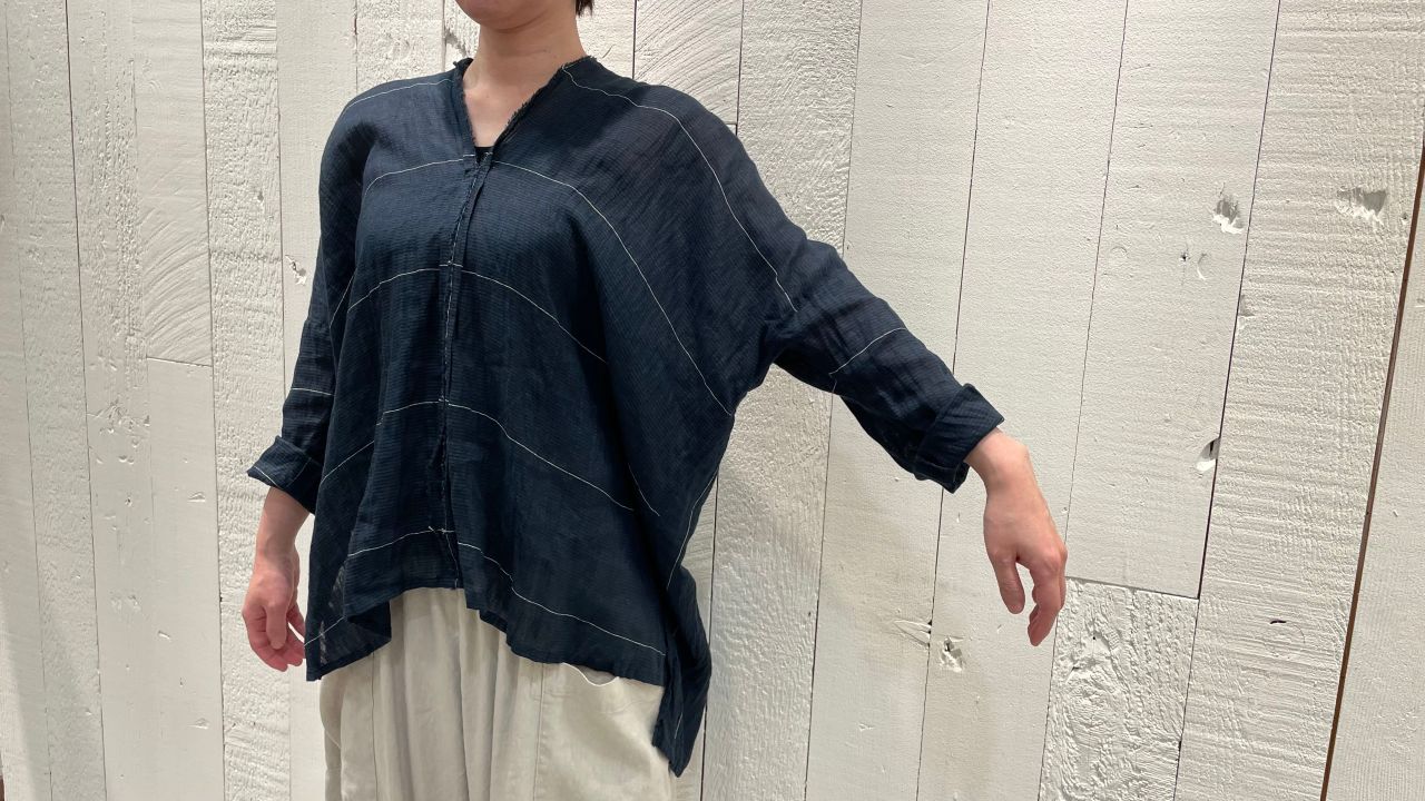 今回ご紹介するのは、バンブー糸が入った涼しげなブラウス。