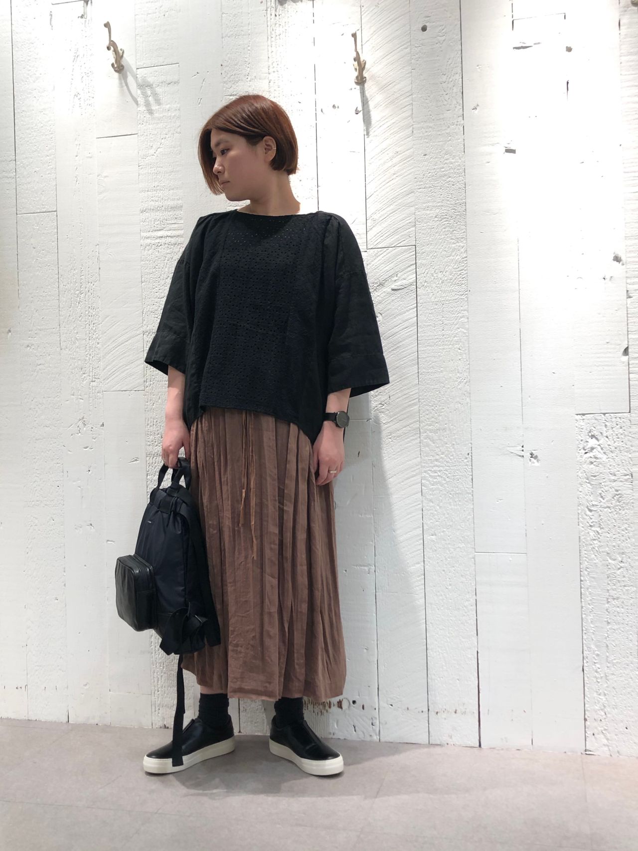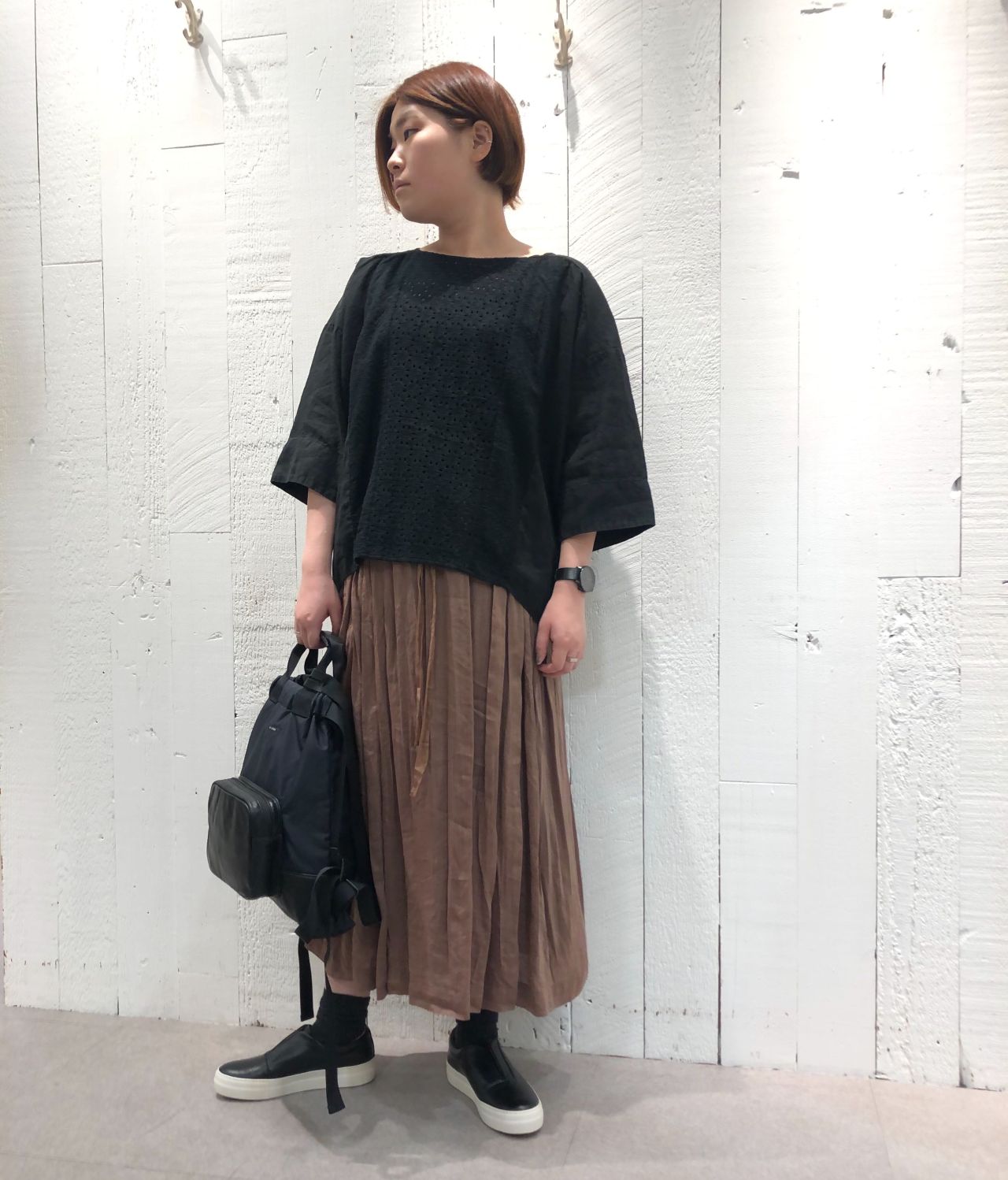 col.アイボリー/レンガ(着用)/クロ