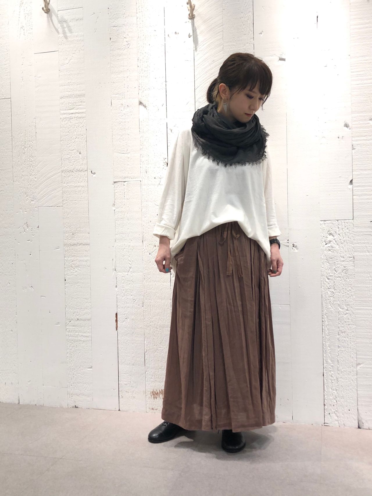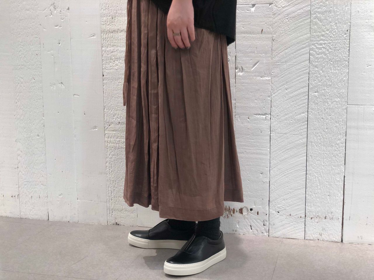 パドカレ秋冬コレクションテーマ、EARTH BROWNのスカート。