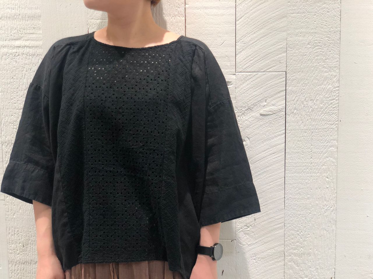 レース&リネン平ブラウス