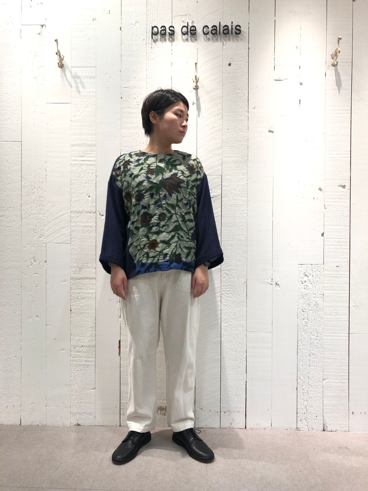 裾幅が細めのテーパードパンツは、一つ前のブログでご紹介したパンツの型違いです。