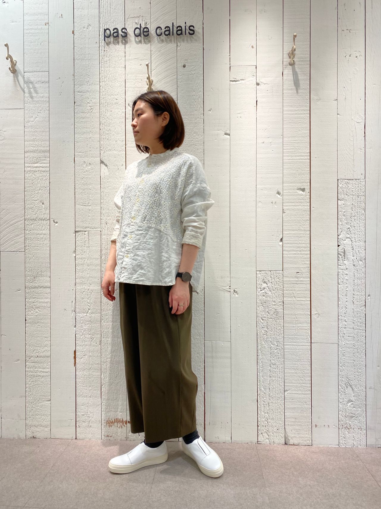 麻特有のさらりとした質感の中にも、柔らかさを残したリラックス感のあるブラウスに仕上げています。