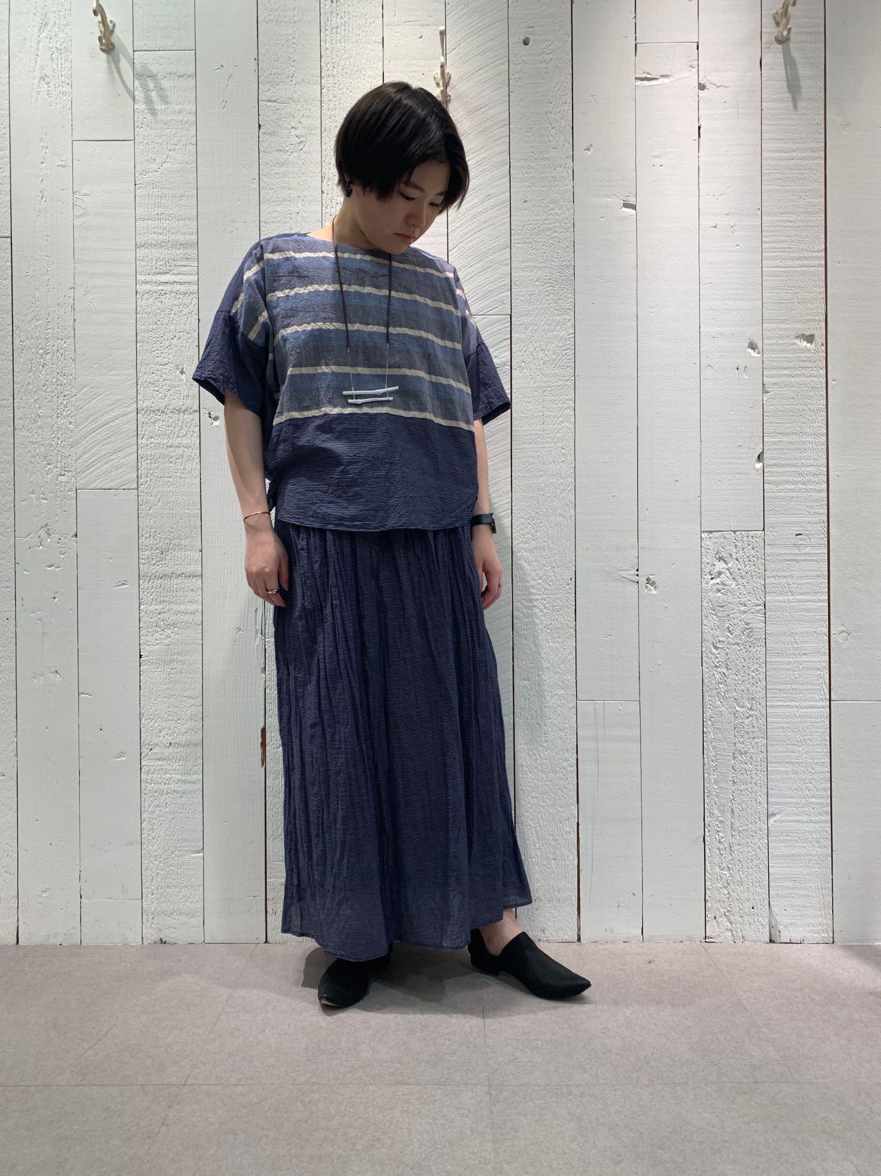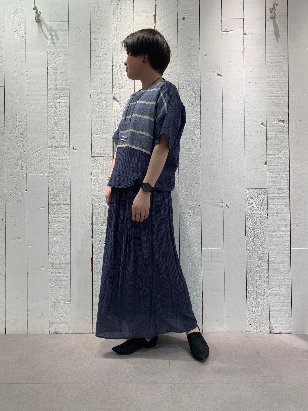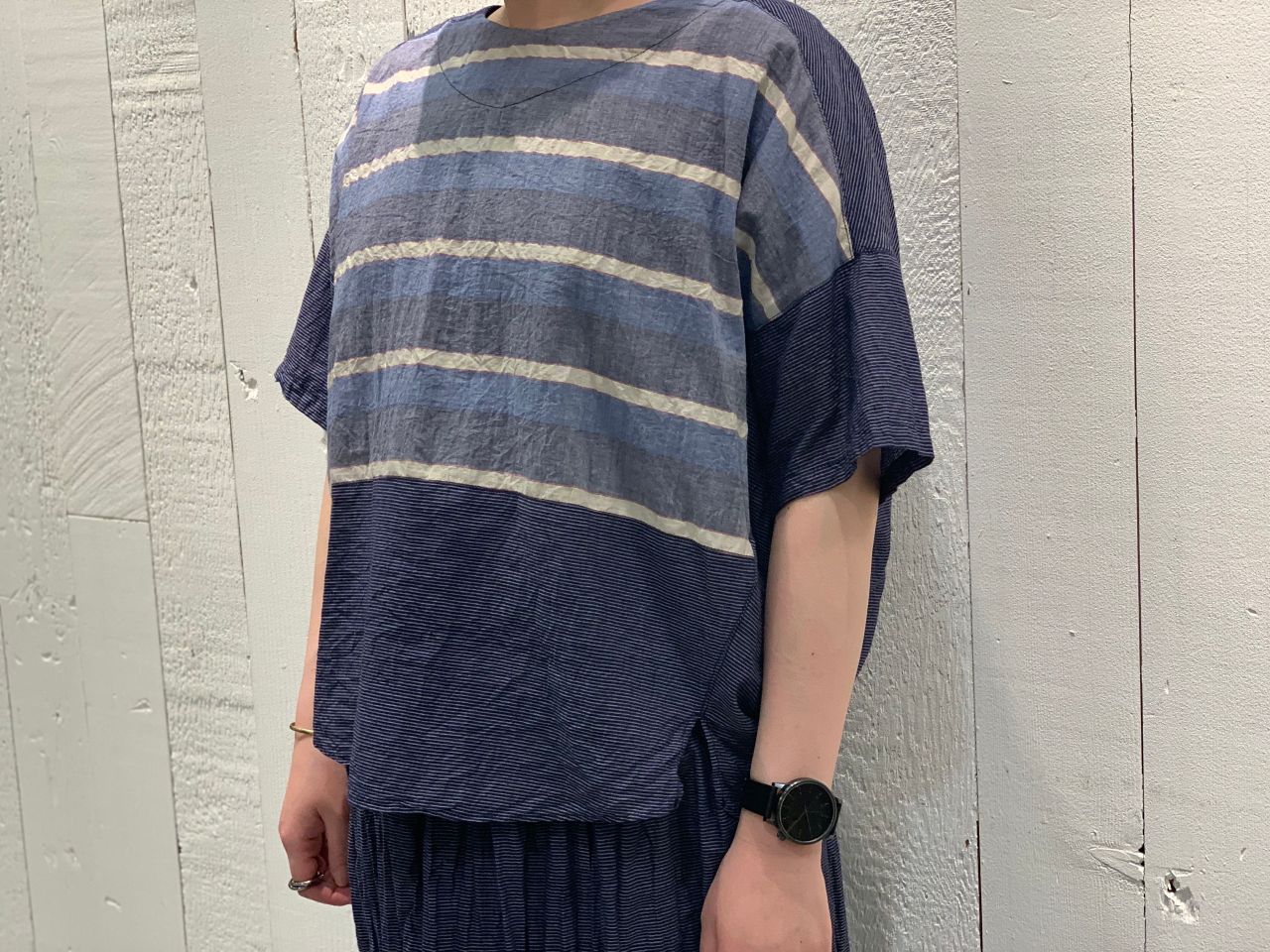 ゆったりと着られ、半袖というほど袖も短くないので腕を出したく無いお客様でも着用できると思いますよ。