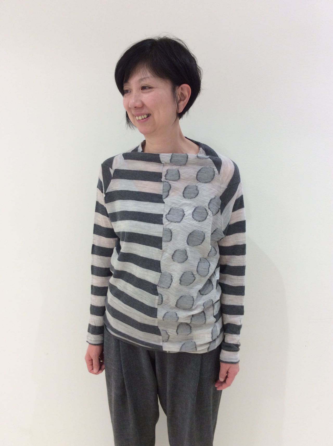 ボーダーとドットでカジュアルに着て頂けます。