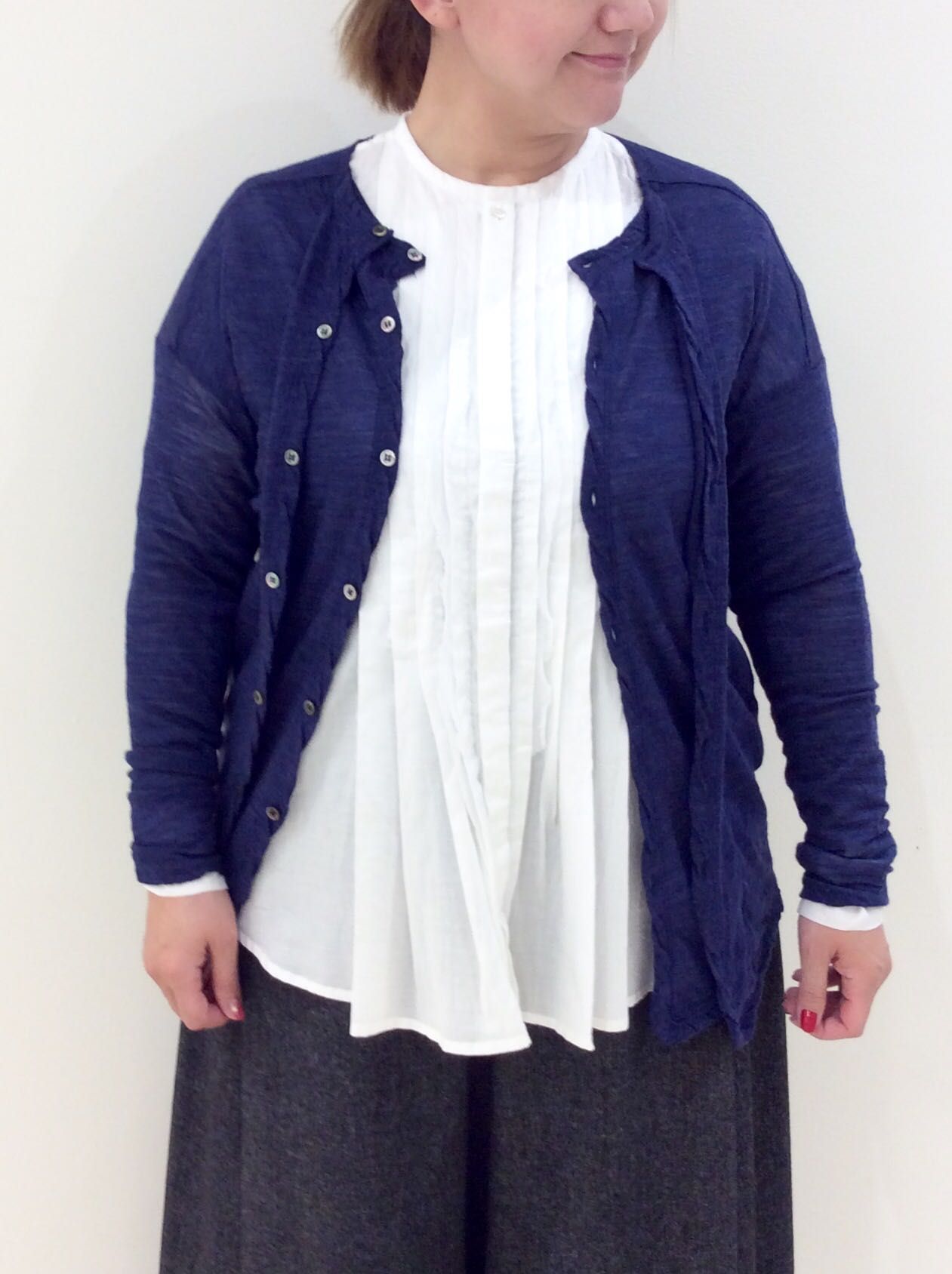 インナーのブラウスは重ねやすい薄手の素材なのでスッキリ着れます。