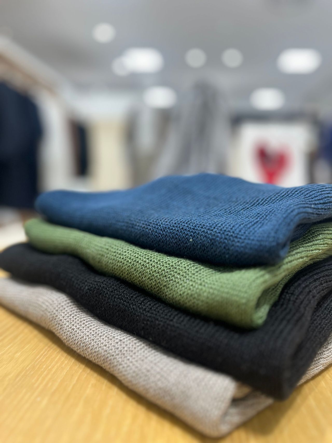 ホールガーメントで編んでいる為麻の毛羽立ちや引っ掛かりが軽減されリネン独特の美しい光沢が際立つのも特徴です。