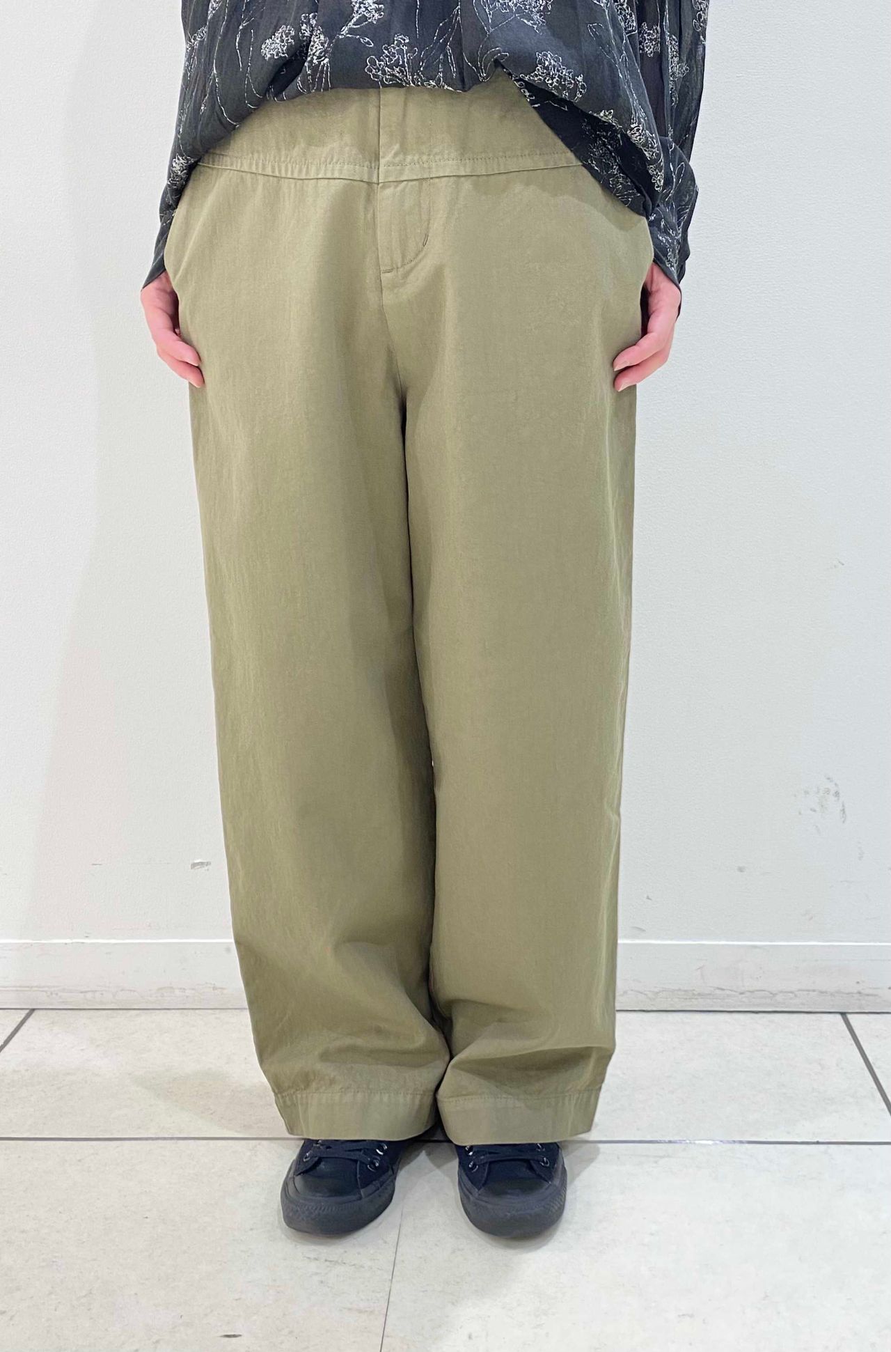 スッキリしたラインになりますので、着丈が長めのトップスにもバランス良く合わせていただけます。