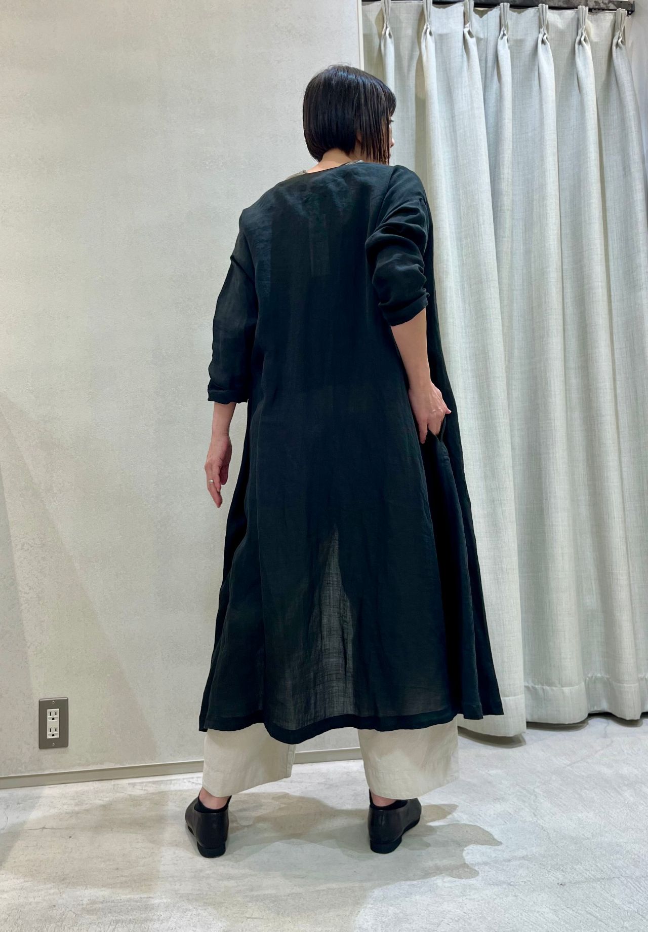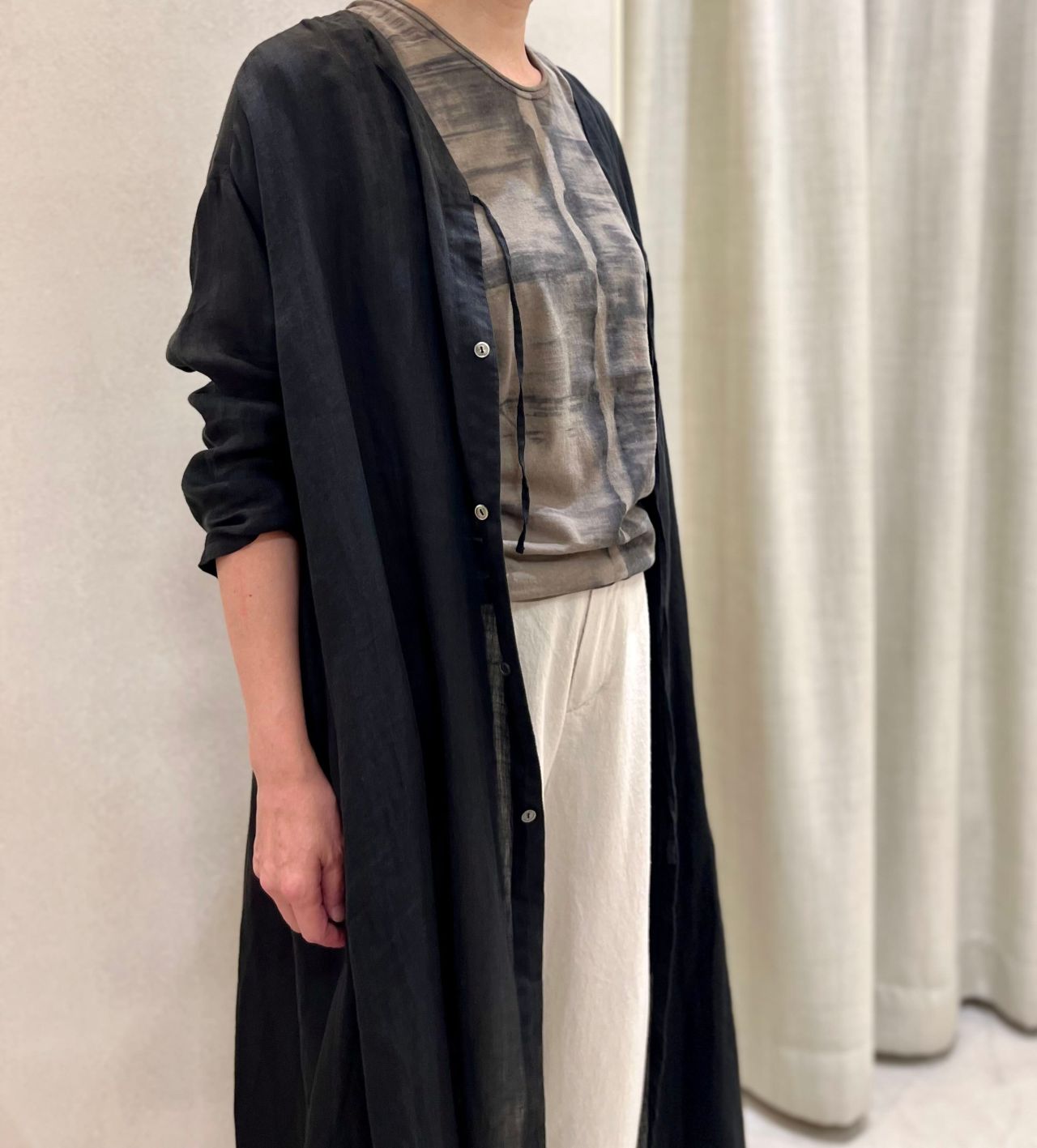 ボタンを全部閉じてワンピース使用と、ボタンを外したロングカーディガン風と2weyで着ていただけます。