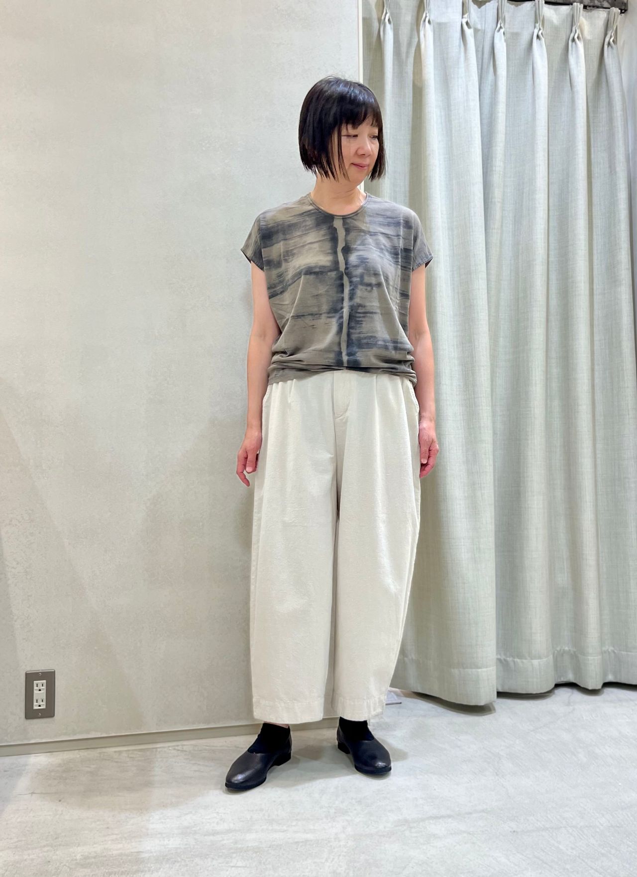 【coordinate】ラミーフランス綾ワンピース/ハケタッチ柄プリントTシャツ/ラフィWワッシャーパンツ