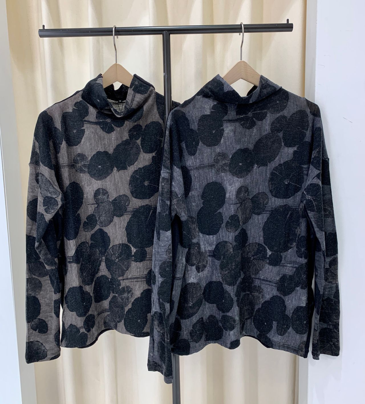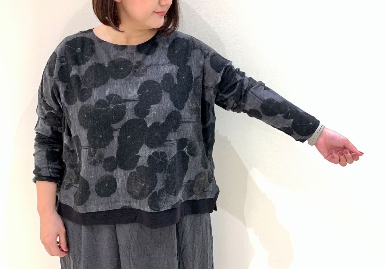 ブログ連動企画「マス柄チェックワッシャー ライトアウター」【新作】Lotus flowerプリントハイネック