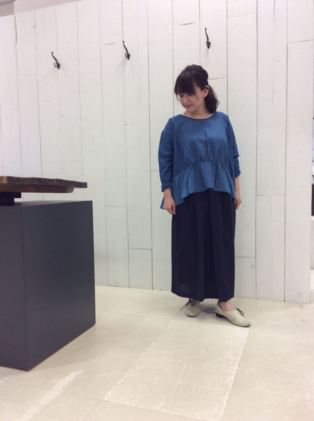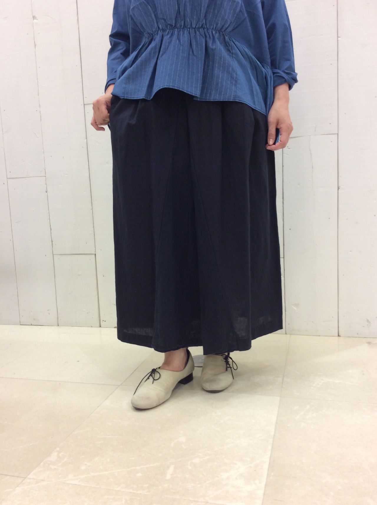 ウエスト部分のギャザーで裾がフワッと広がるシルエットです。