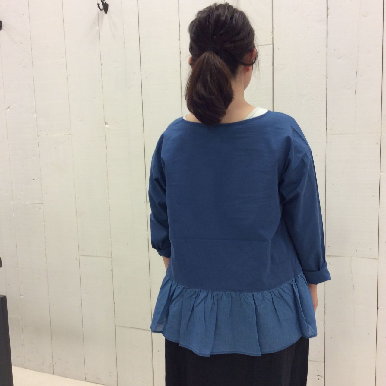 前身頃に別地でマチを入れ、さりげない素材感の違いをポイントにしたデザインです。