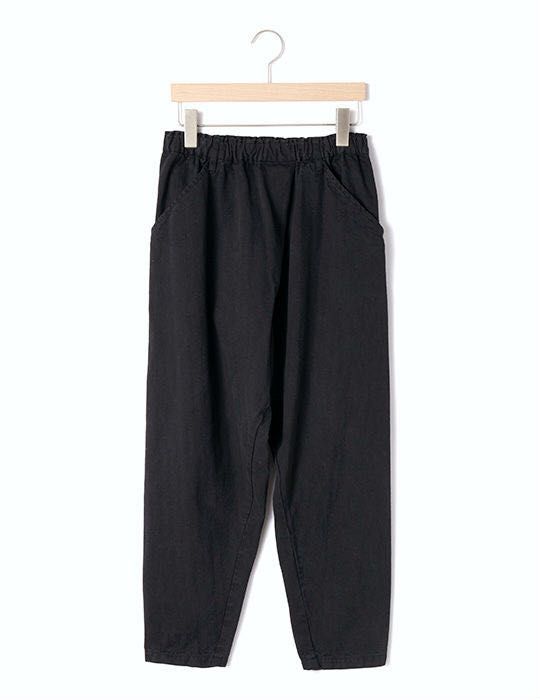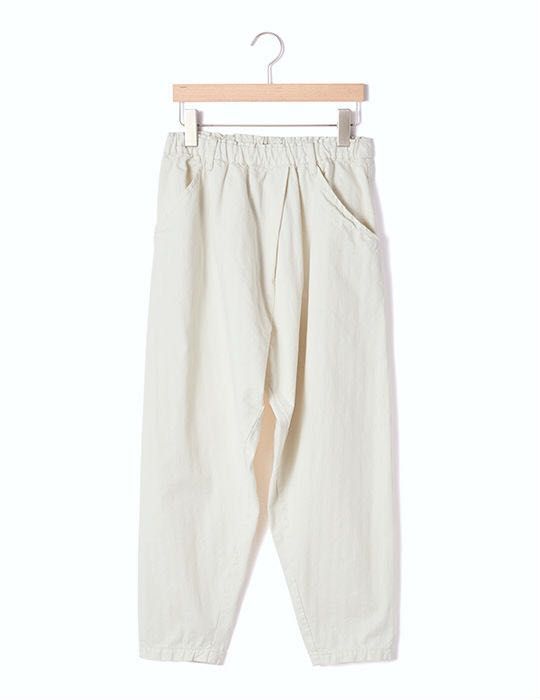 ウエスト総ゴムで履きやすいラップデザインのテーパードパンツです。