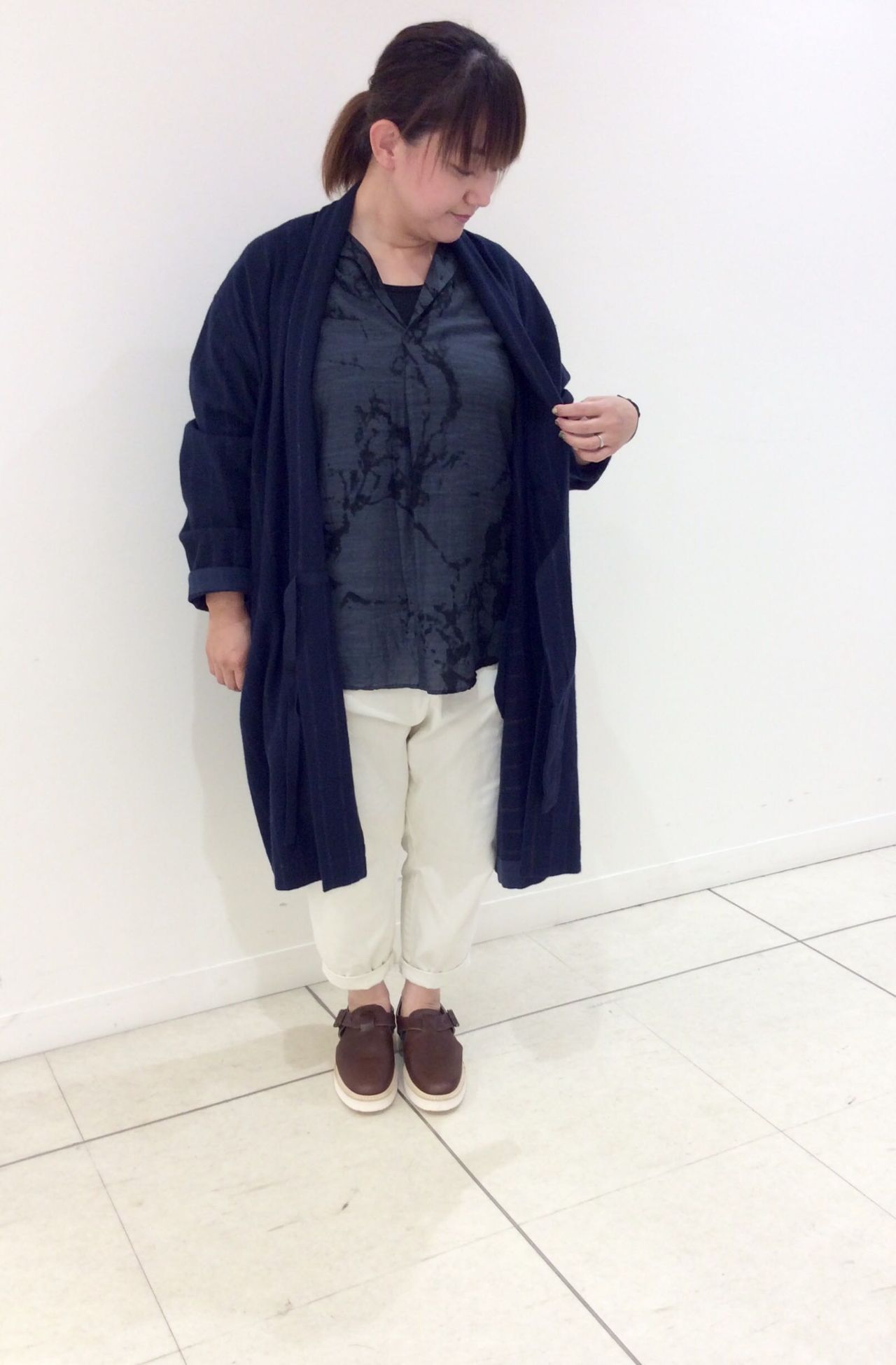 パンツにもスカートにも合わせやすい長さです。