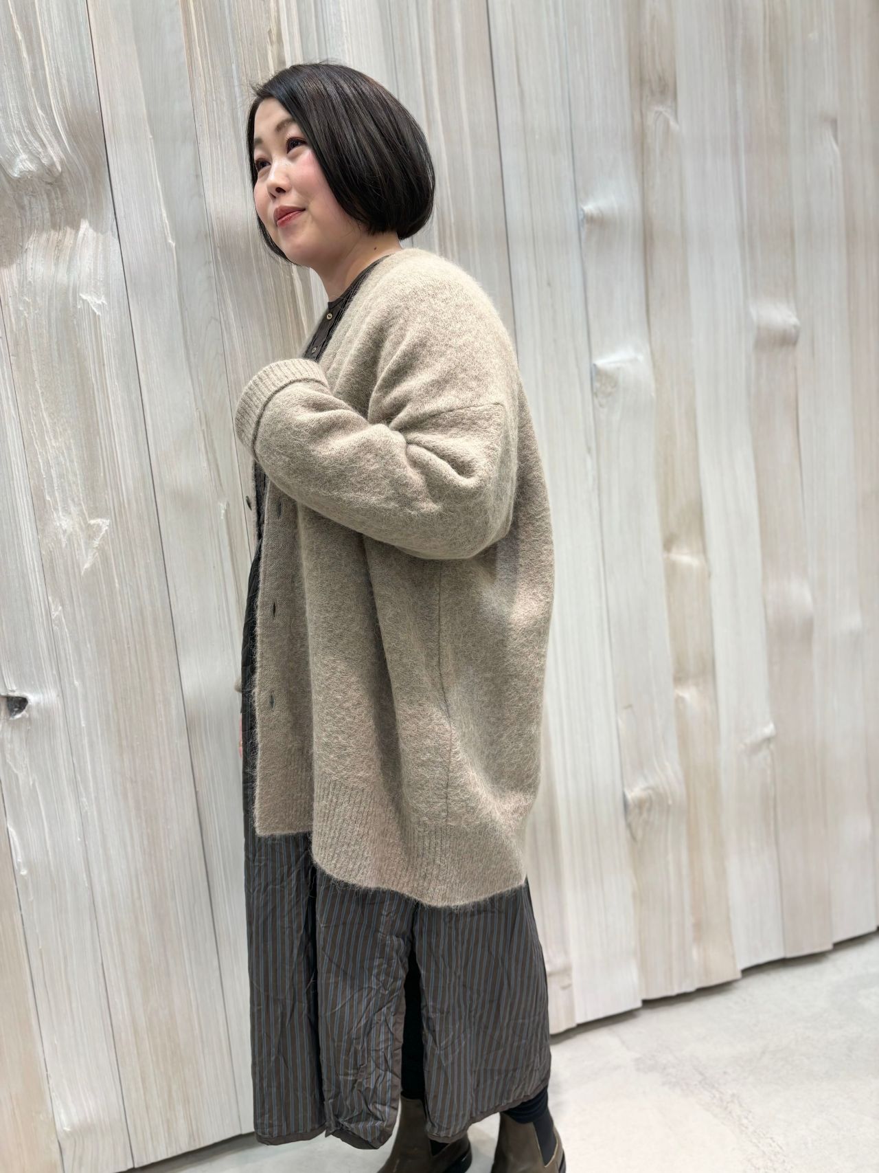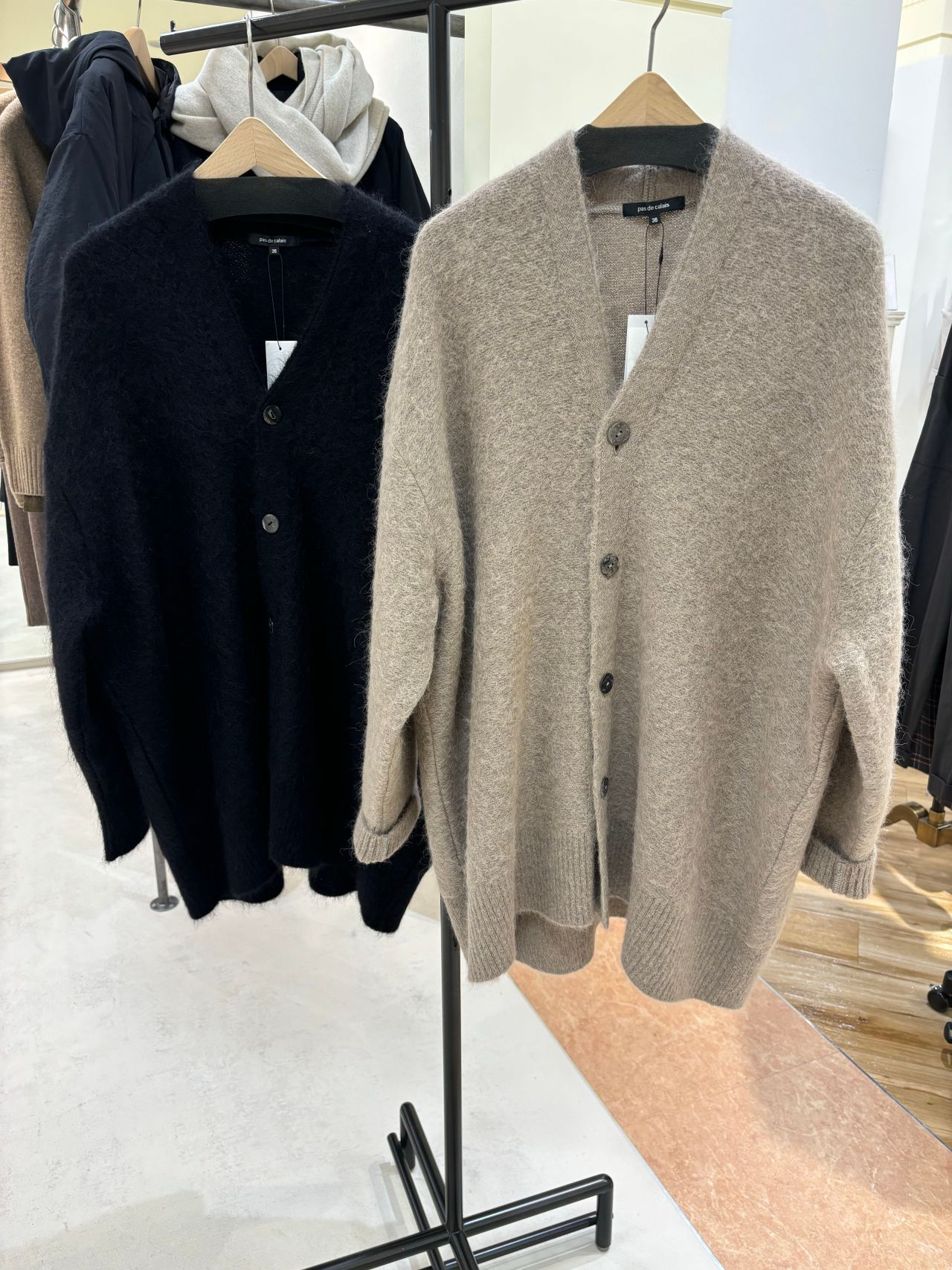 希少価値のスーリーアルパカを使用しているため、刺し毛も少なく優しい着心地のセミロングのカーディガン。