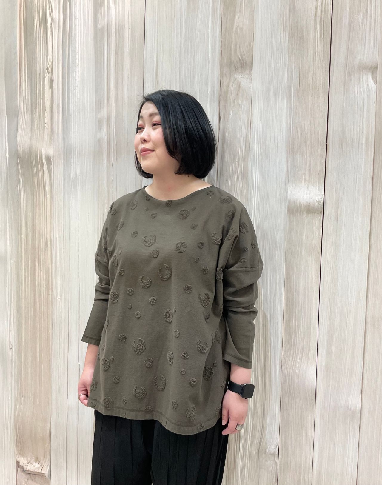 ゆったりとした分量感のクルーネックプルオーバーで気軽に着用できて重宝致します。