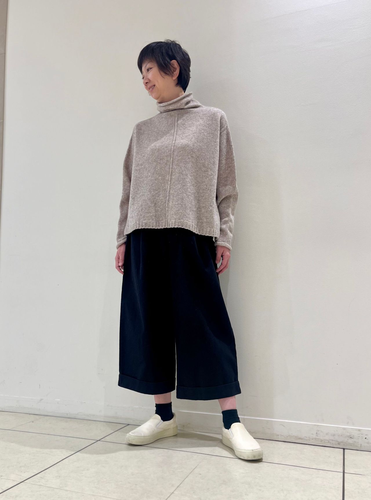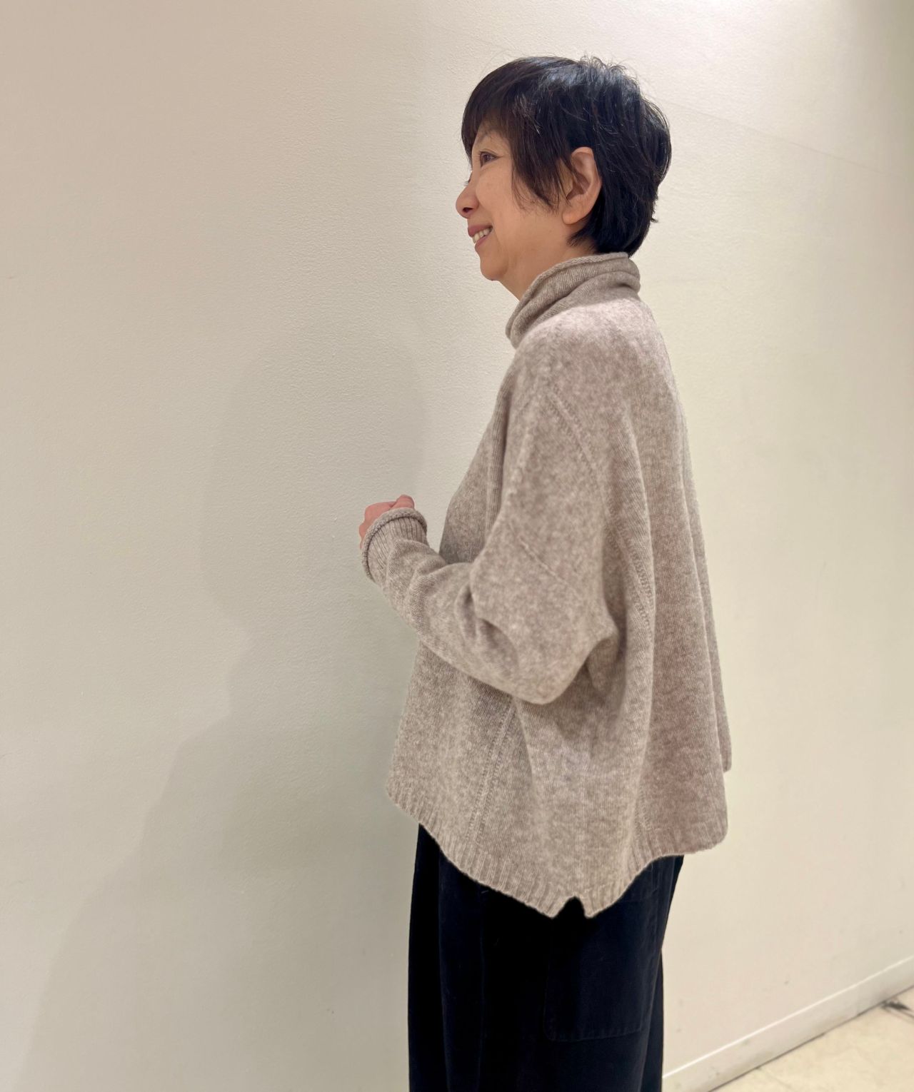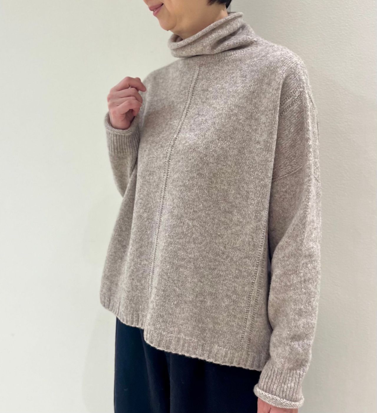 身幅をたっぷりとった、スクエア型ハイネックプルオーバーです。