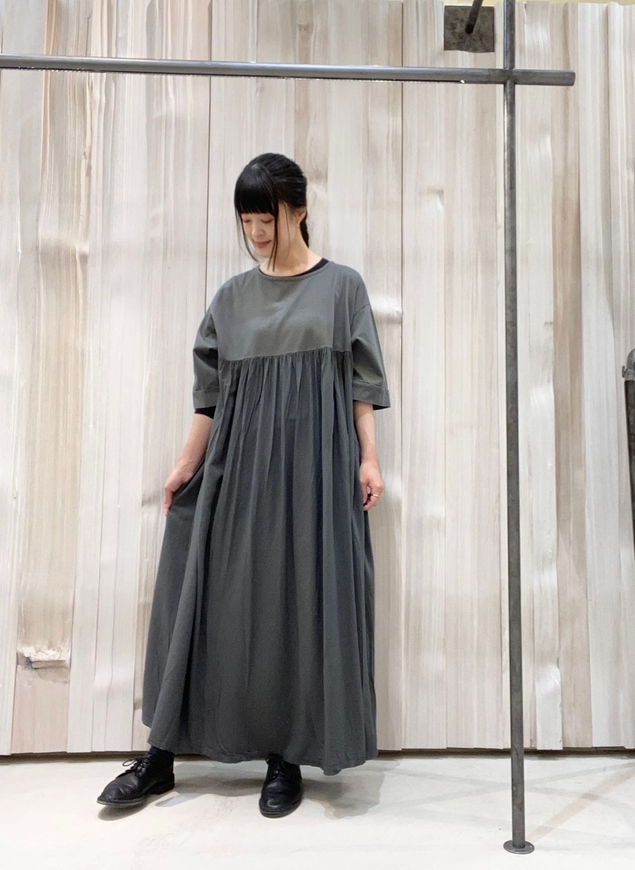 素材切り替えの、ギャザーワンピース。