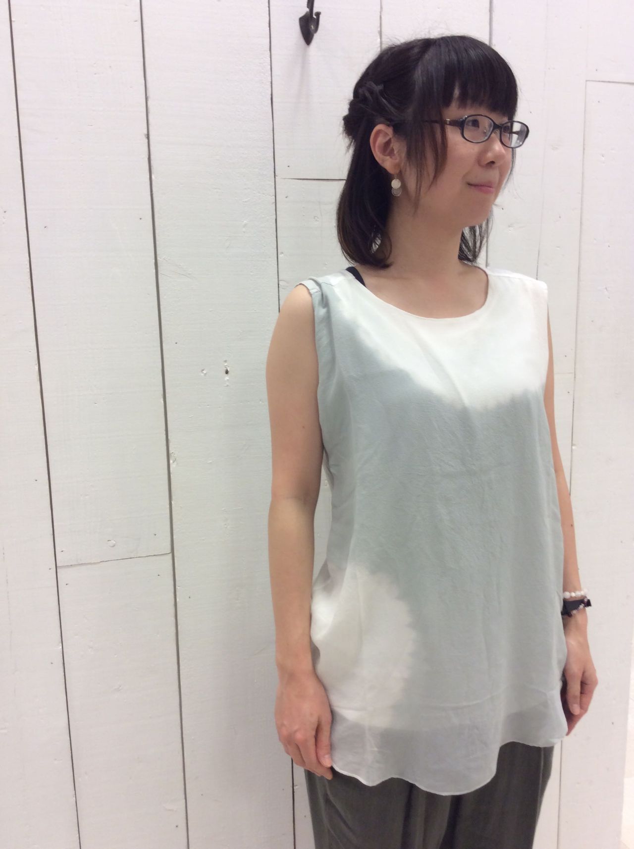 日本伝統の絞り染めをモダンに表現したノースリーブプルオーバー。
