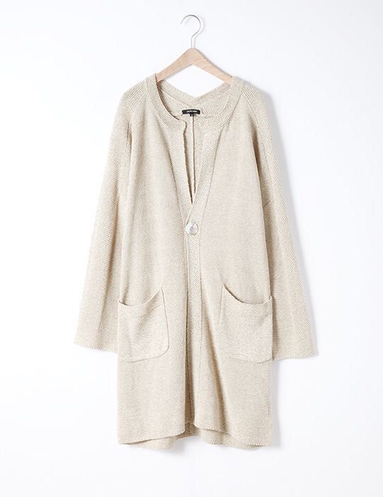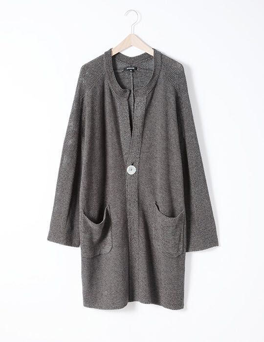 美濃和紙混×シルクオーガンジー ロングカーディガン no.2951 col.チャコール(着用)/ベージュ size.36 ¥30.240