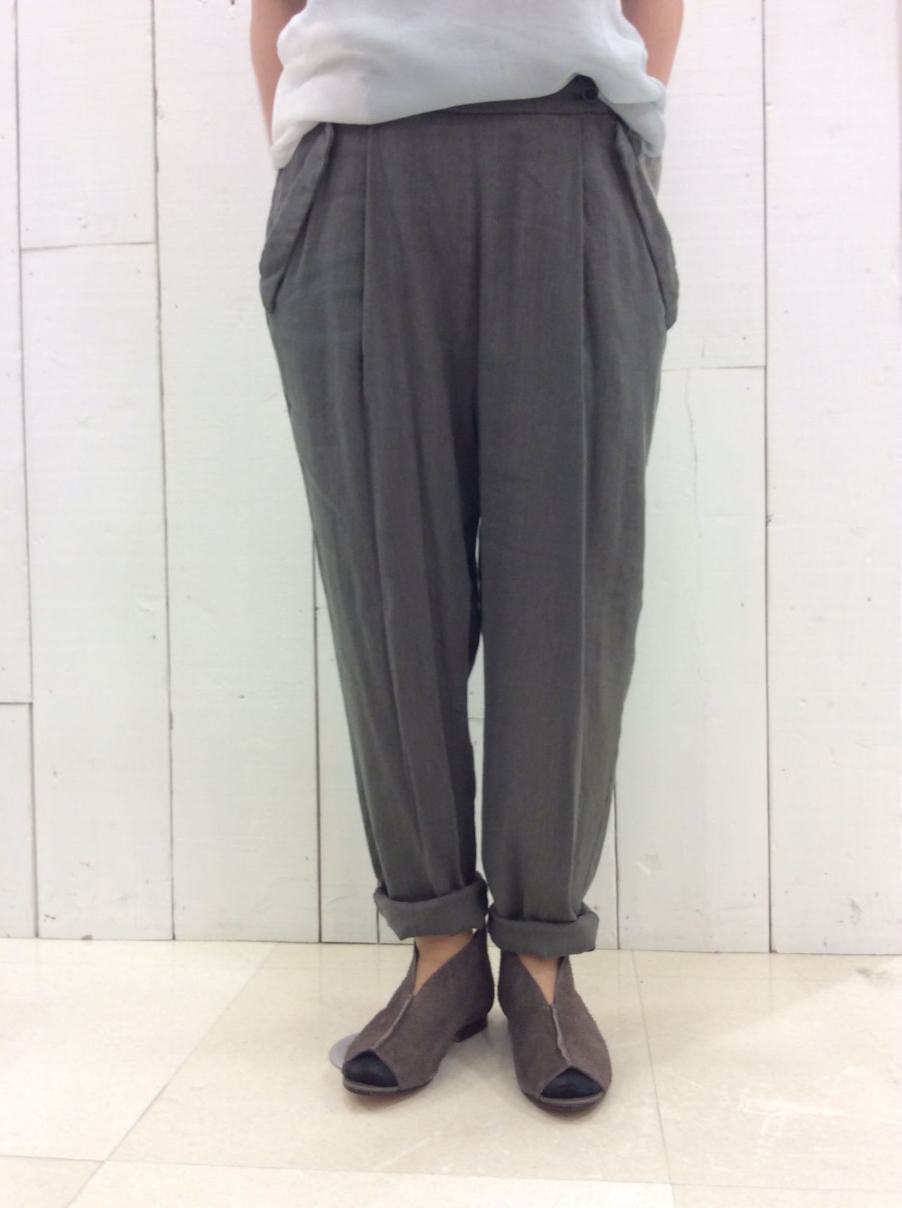 リネンヴィスコースストレッチ パンツ no.8426 col.グレー(着用)/クロ size.36 ¥19.440