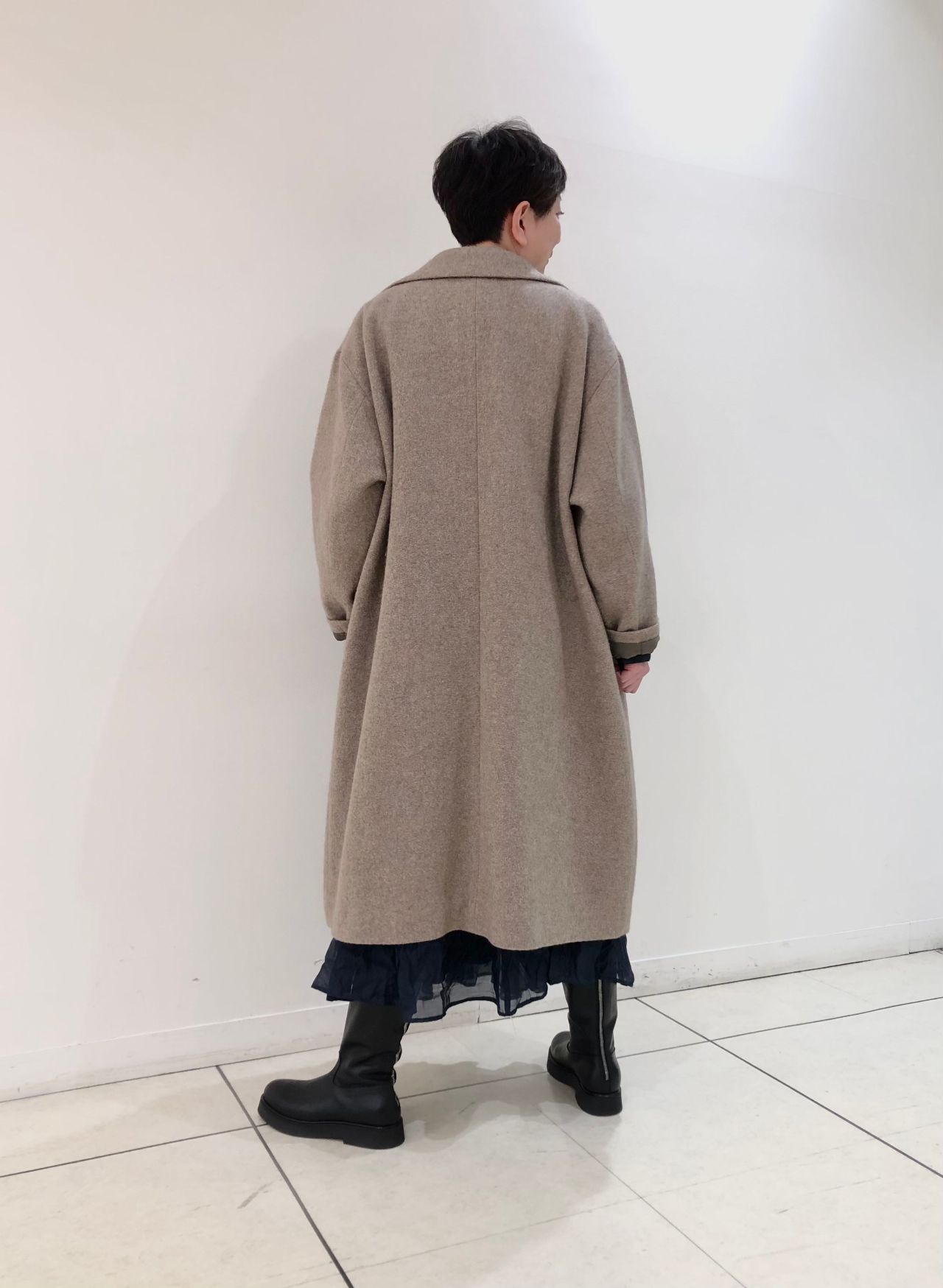 たっぷりの分量感のロングコートです。