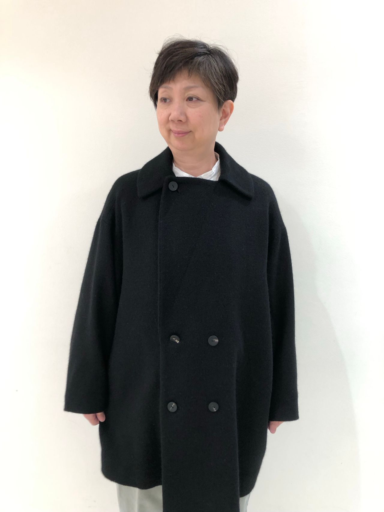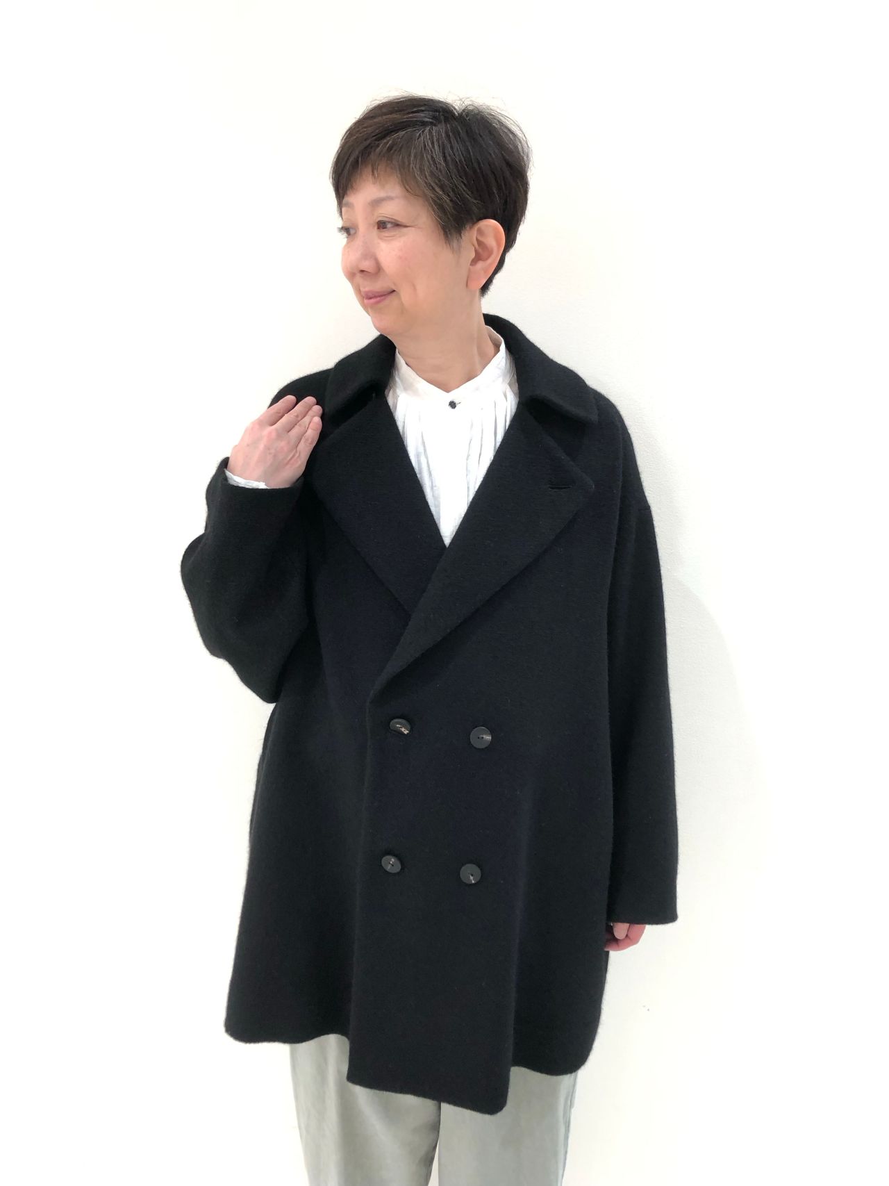 ボリューム感のあるミドル丈のコートです。