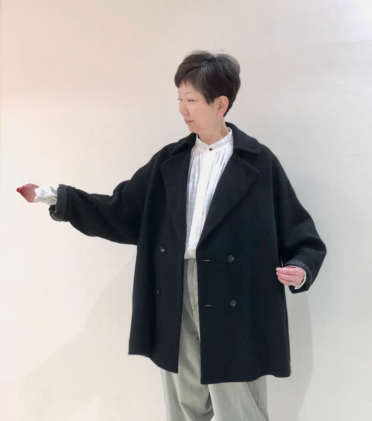 ダブル釦がクラシカルな印象です。