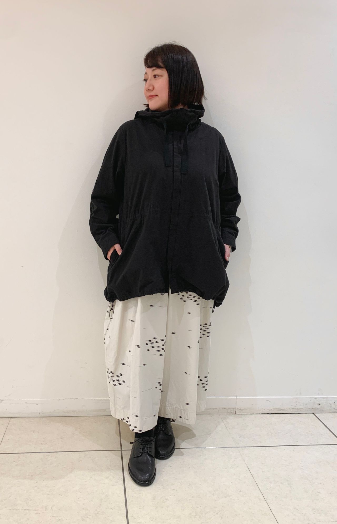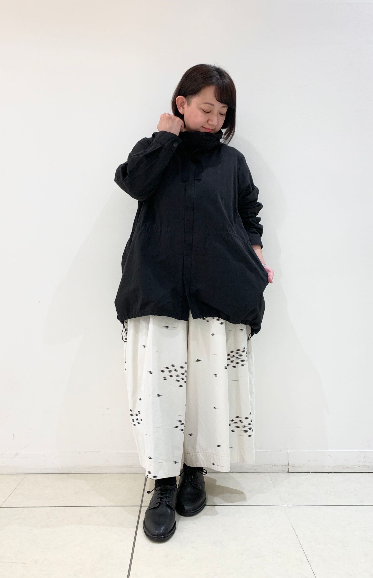 今回はカプセルコレクション「Happy Holliday」新作のパンツと、以前より好評のコンパクトクロスコートを合わせたコーディネートをご紹介いたします。