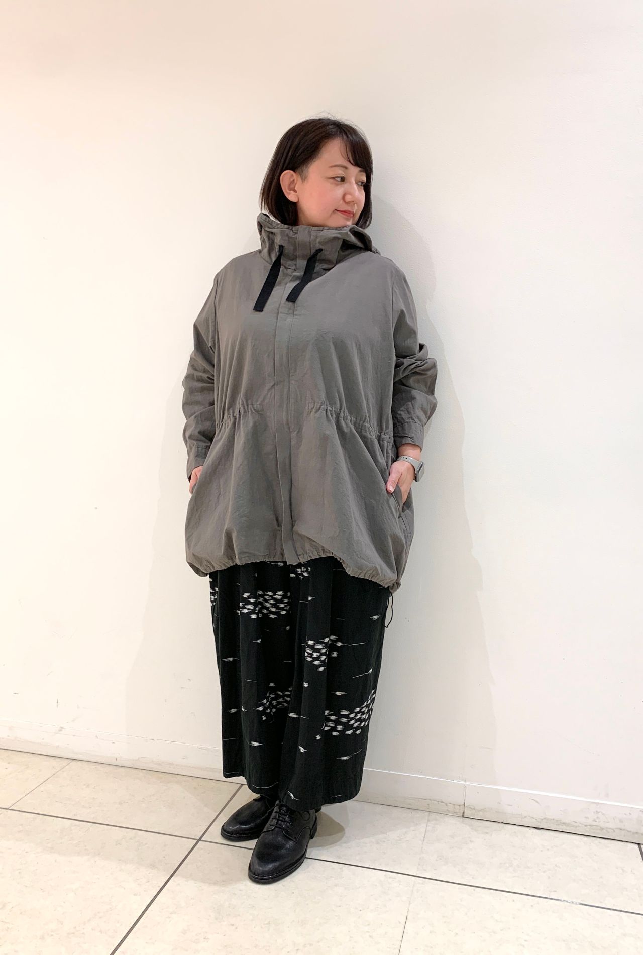 コンパクトクロスコートはサイズ展開あり、クロ34サイズ、カーキ36サイズを着用してみました。