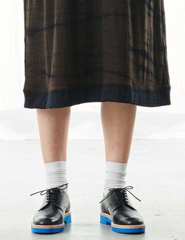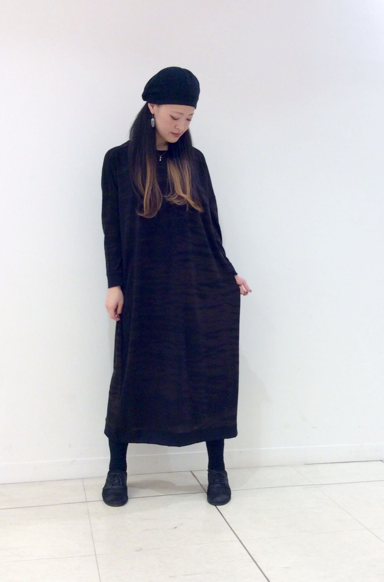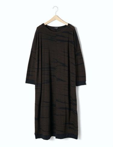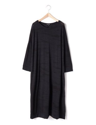 すとんとしたロングワンピースは、落ち着いていながらも独特な雰囲気のある「筒染め」を施したもの。