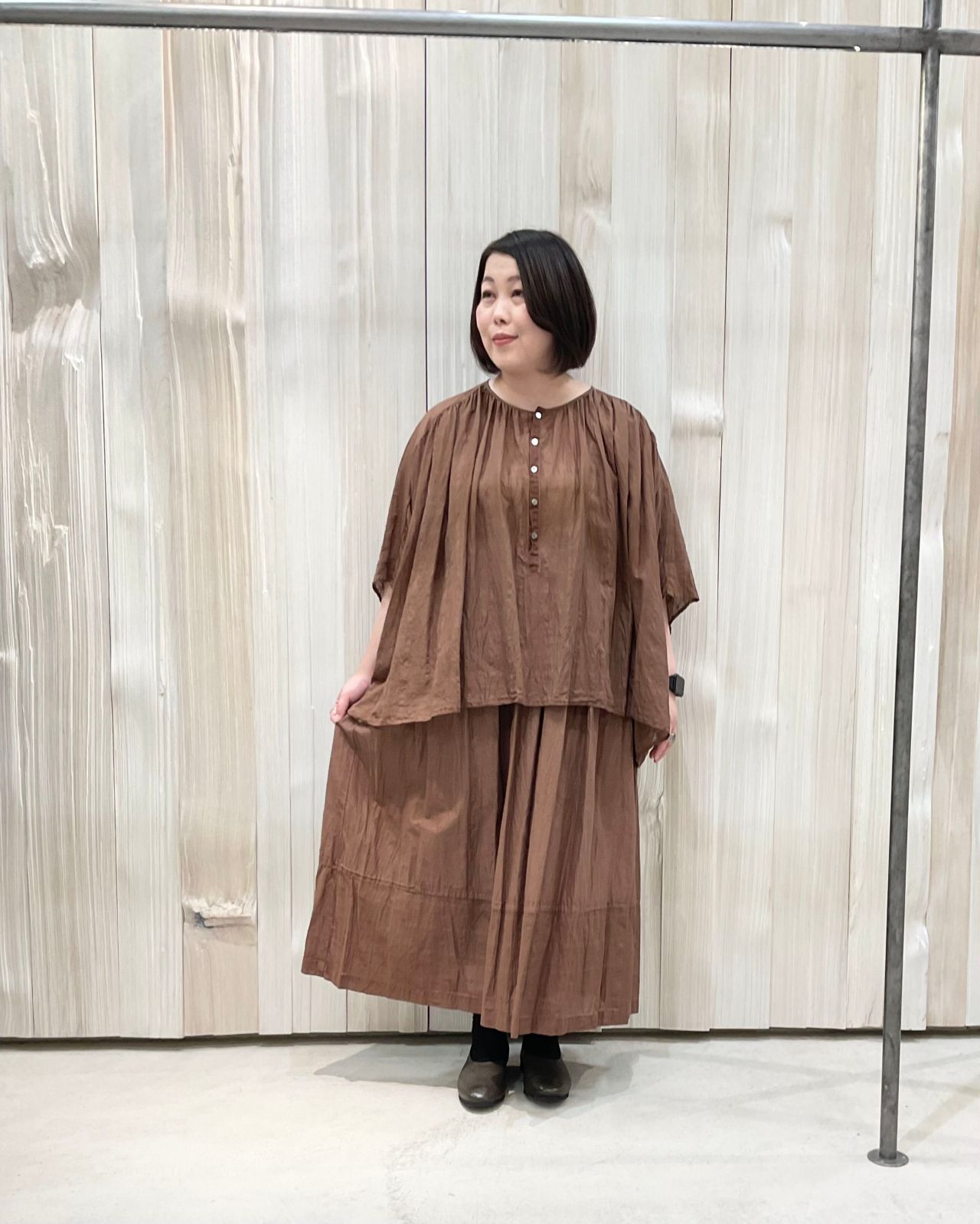 スカートはタックギャザー。裾の部分はチェック柄を使用。