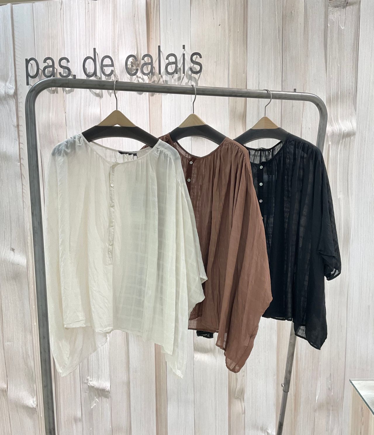 チェック柄ボイル素材を使用したプルオーバーブラウス。