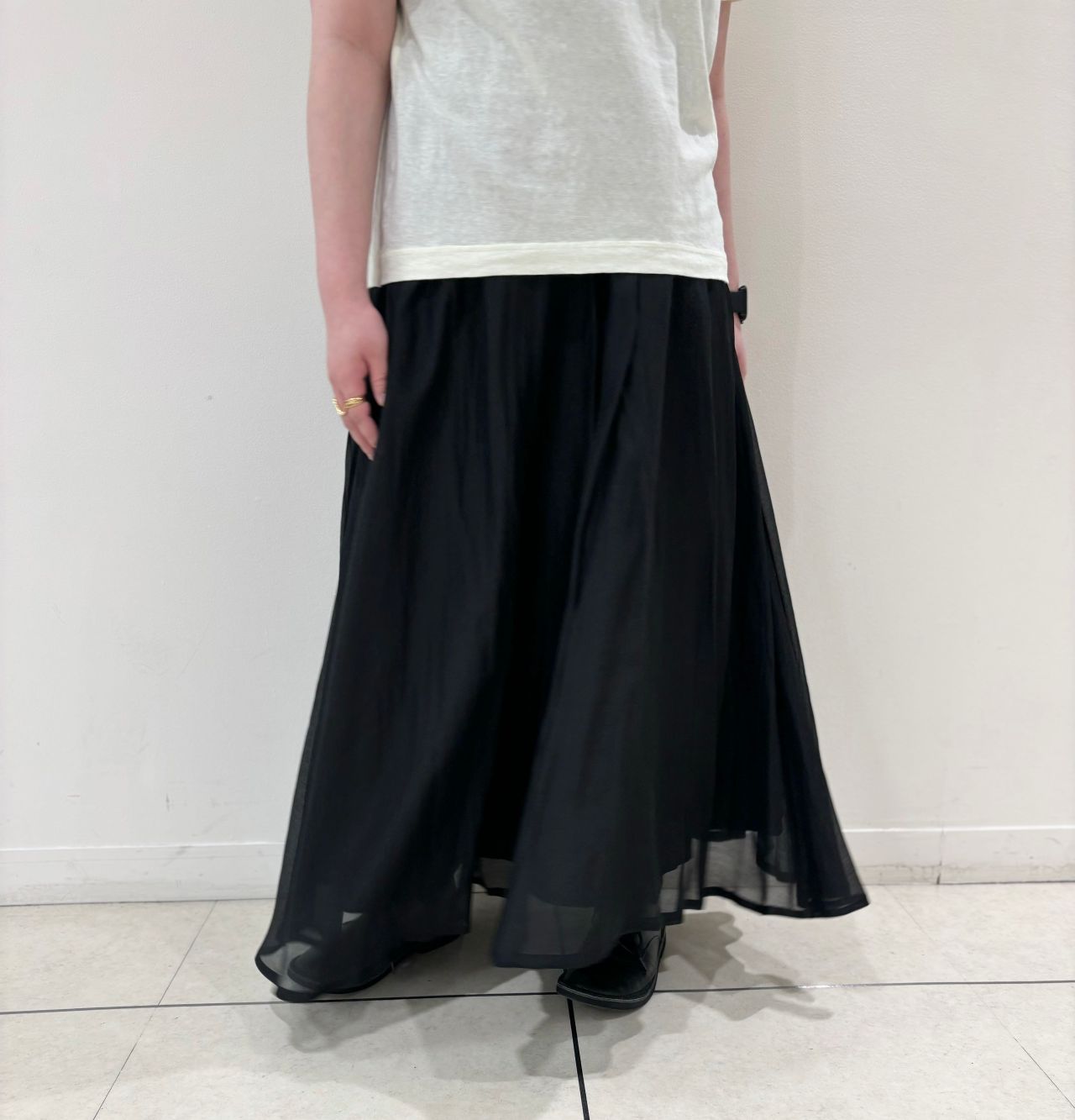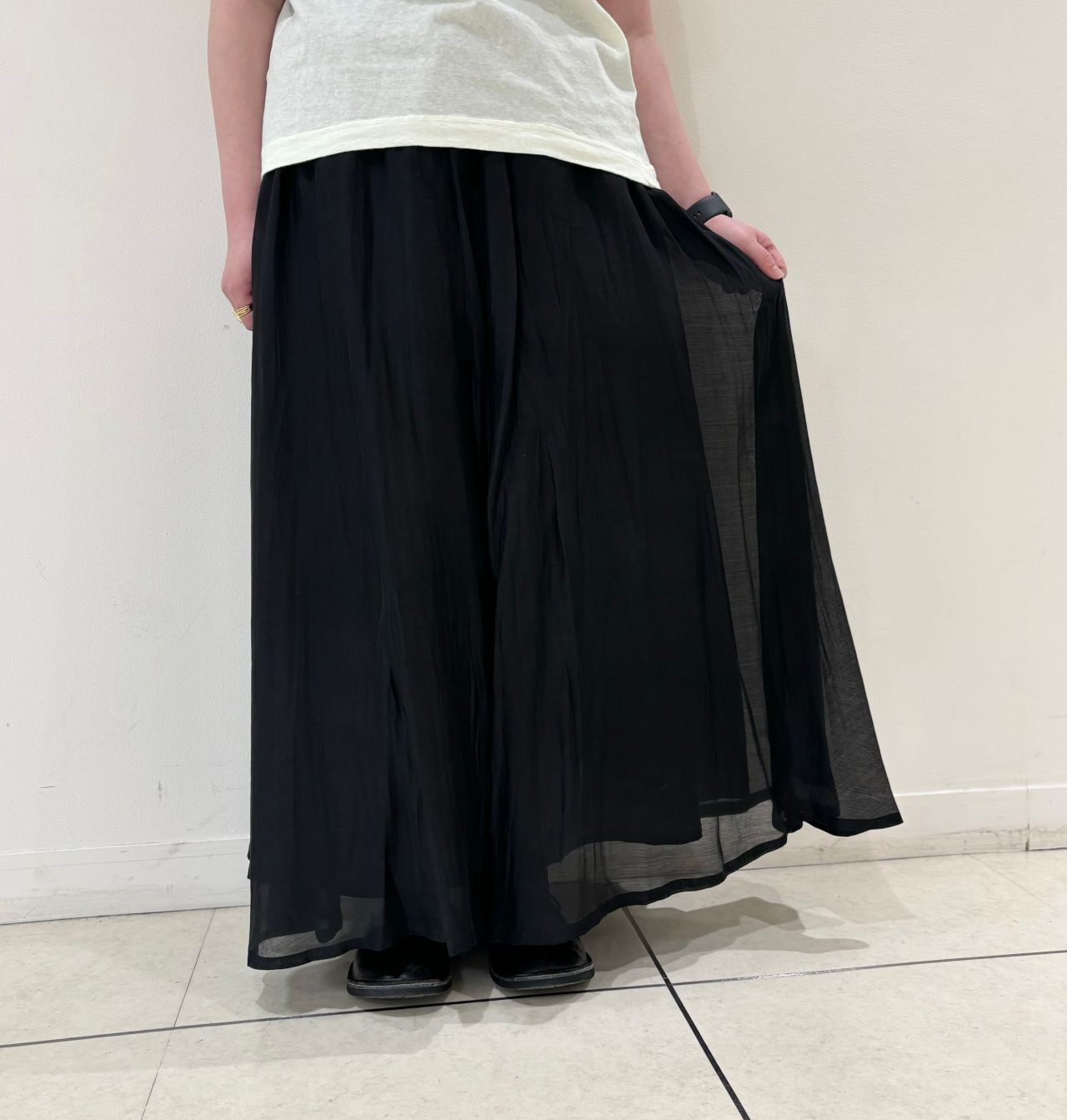 繊細な素材ですが、ポリエステルが入っているので、シワになりにくく、軽やかに履いて頂けます。