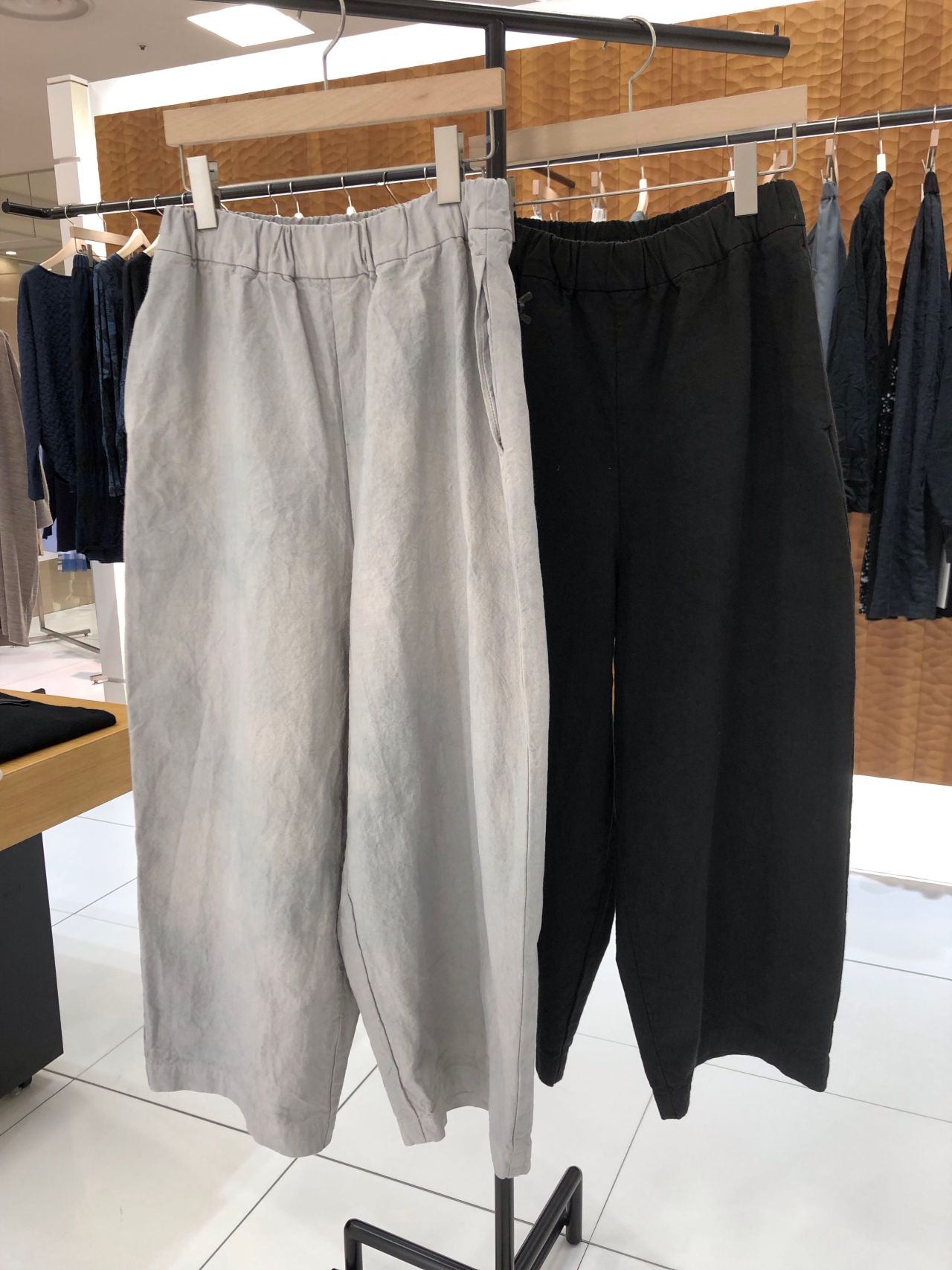 ウエスト部分はゴム+ドローストリング仕様のためウエストの収まりが良く、着脱しやすいデザインです。
