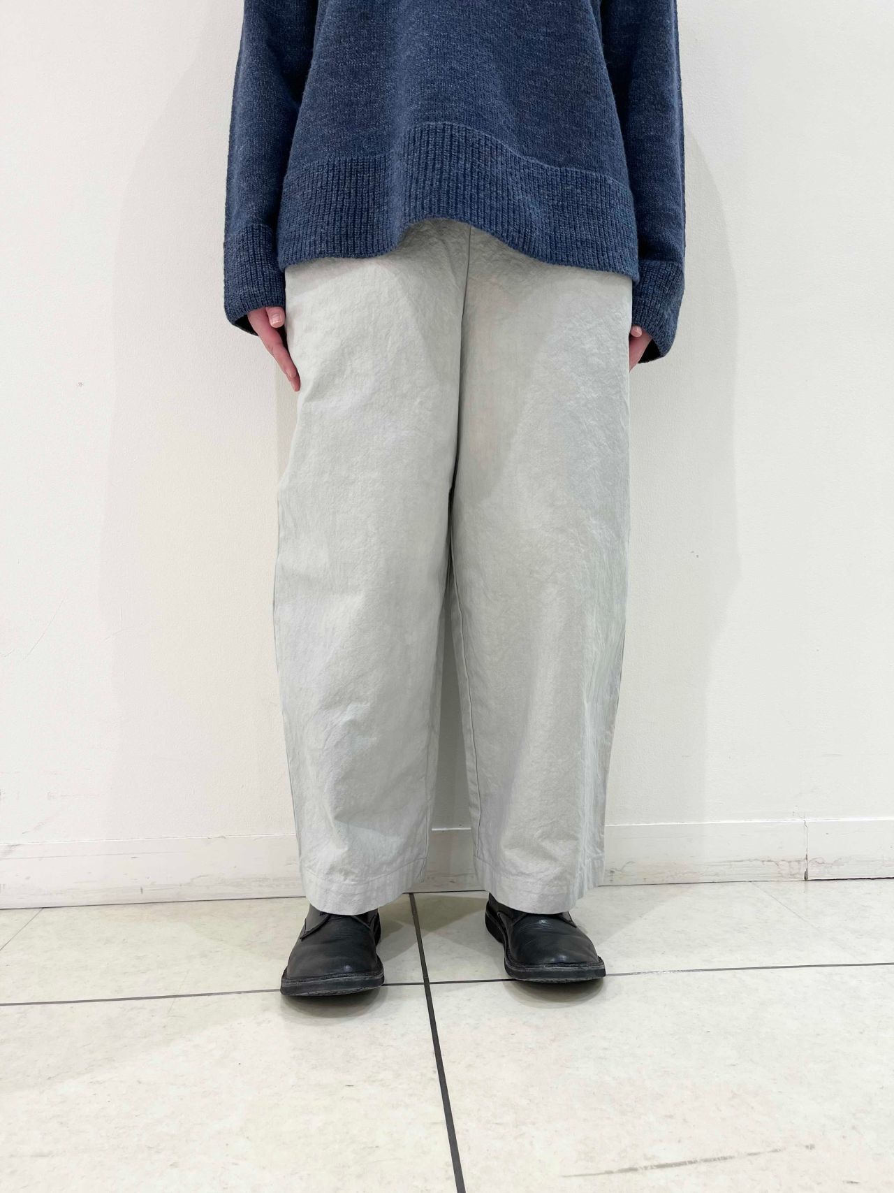 ふんわりとしたシルエットのギャザーパンツ。